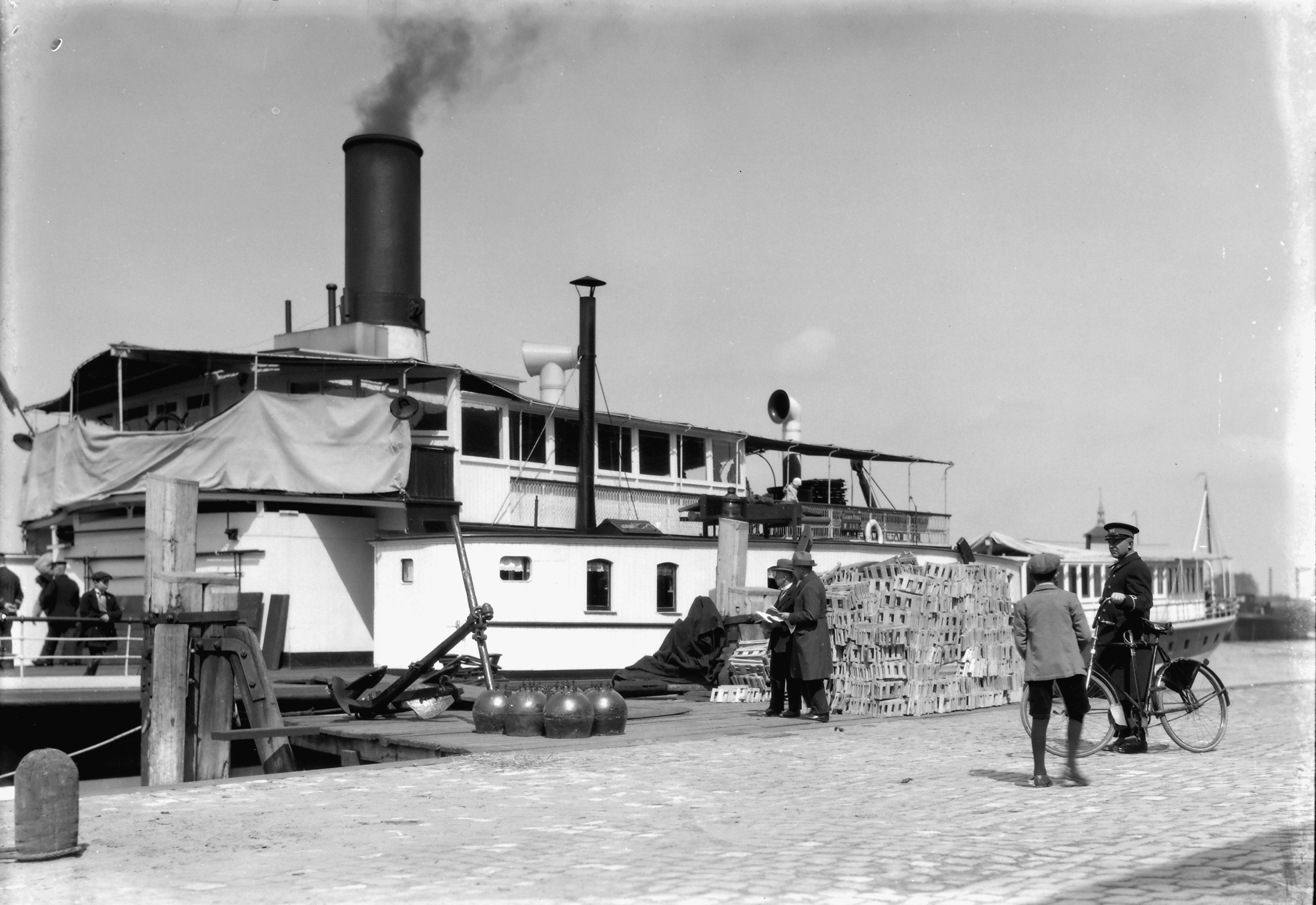 - Afgemeerde stoomraderboot van rederij Fop Smit aan het Bolwerk/Merwekade.