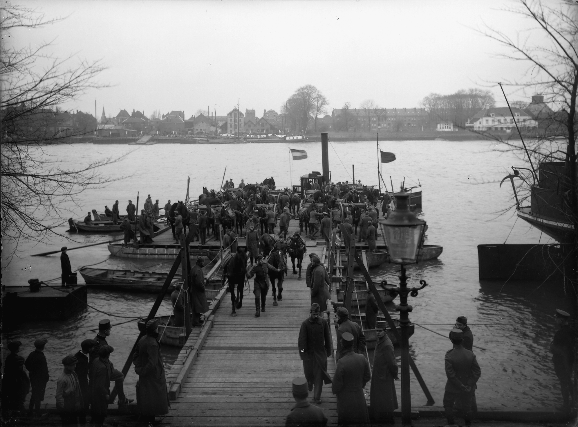 - lantaarns / straatverlichting paarden pontonniers pontons vlaggen(stokken)