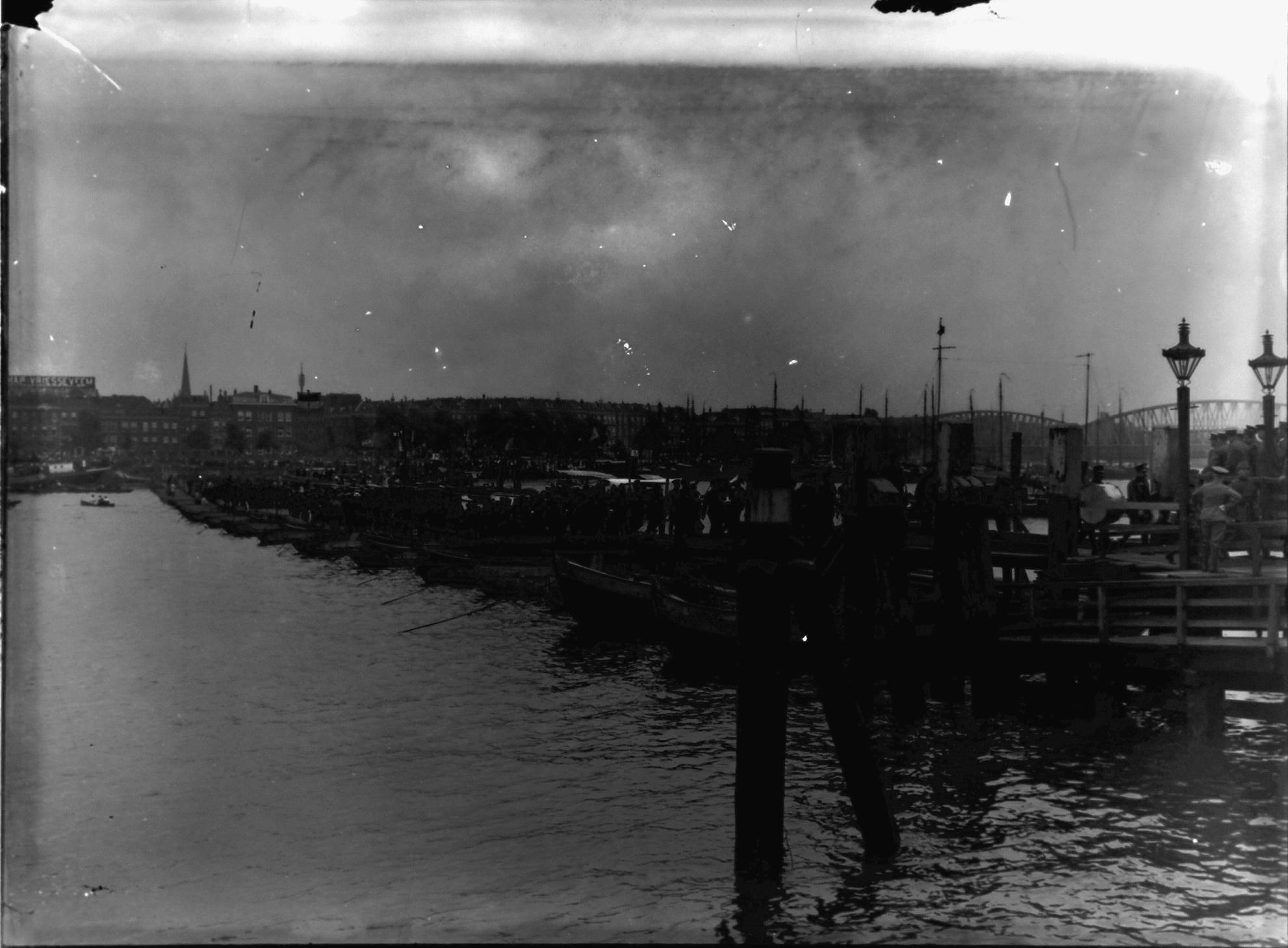- Een door pontonniers geslagen brug over de Nieuwe Maas in Rotterdam.