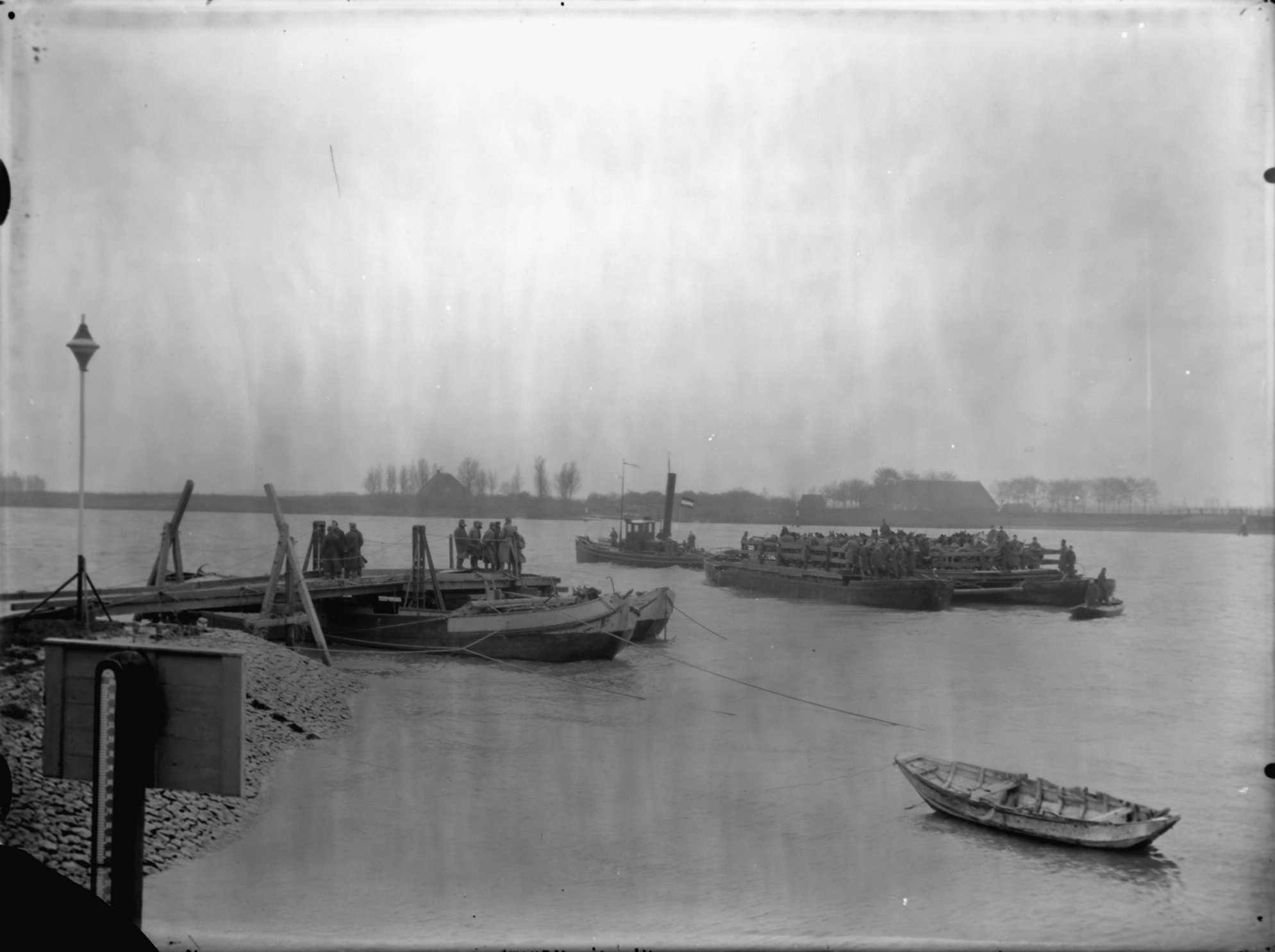 - Oefeningen van pontonniers op de Dordtsche Kil bij het bruggendepot nabij Willemsdorp.