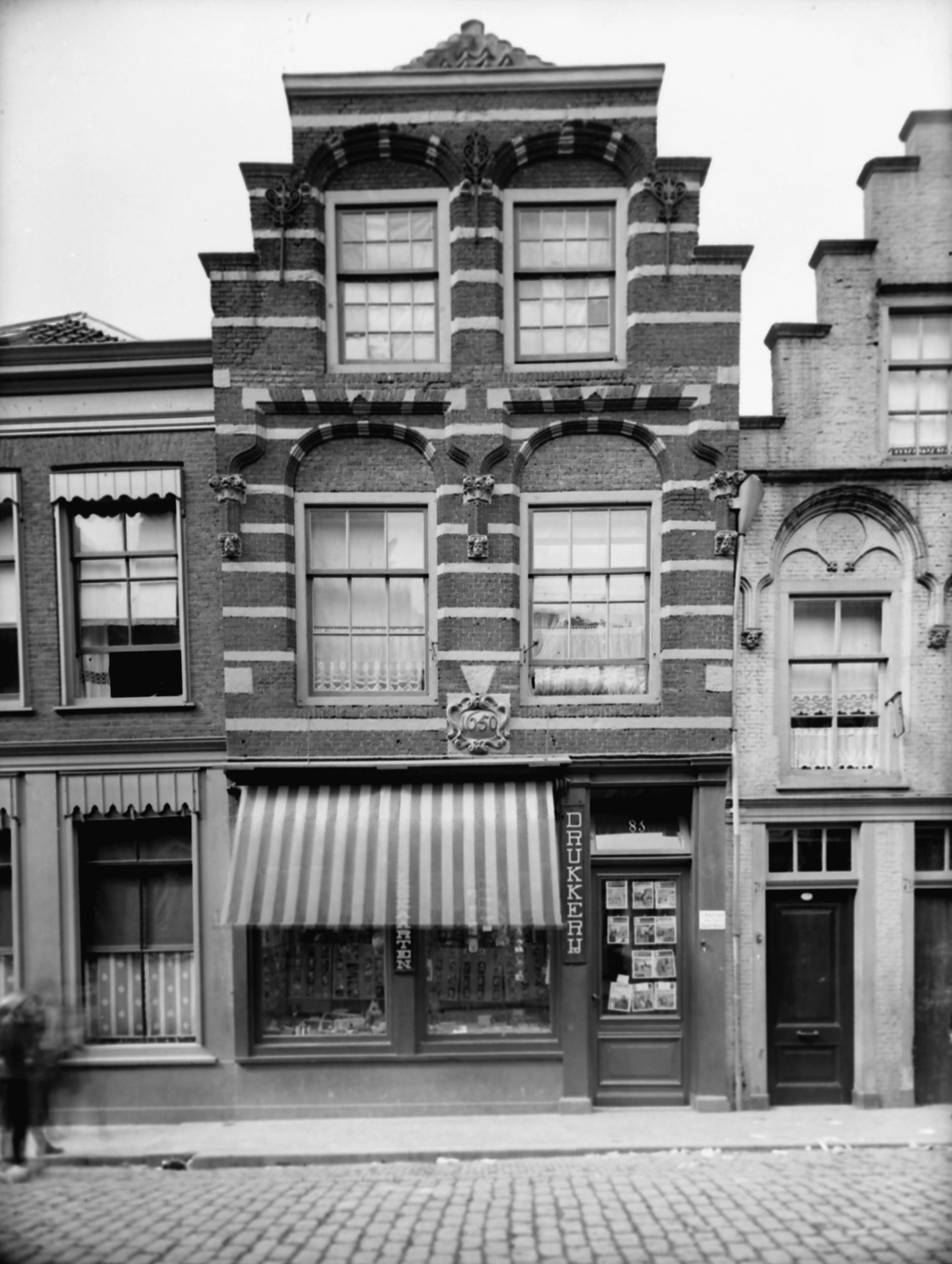- Pand aan de Voorstraat waarin boekdrukkerij J.M. Schmidt is gevestigd.