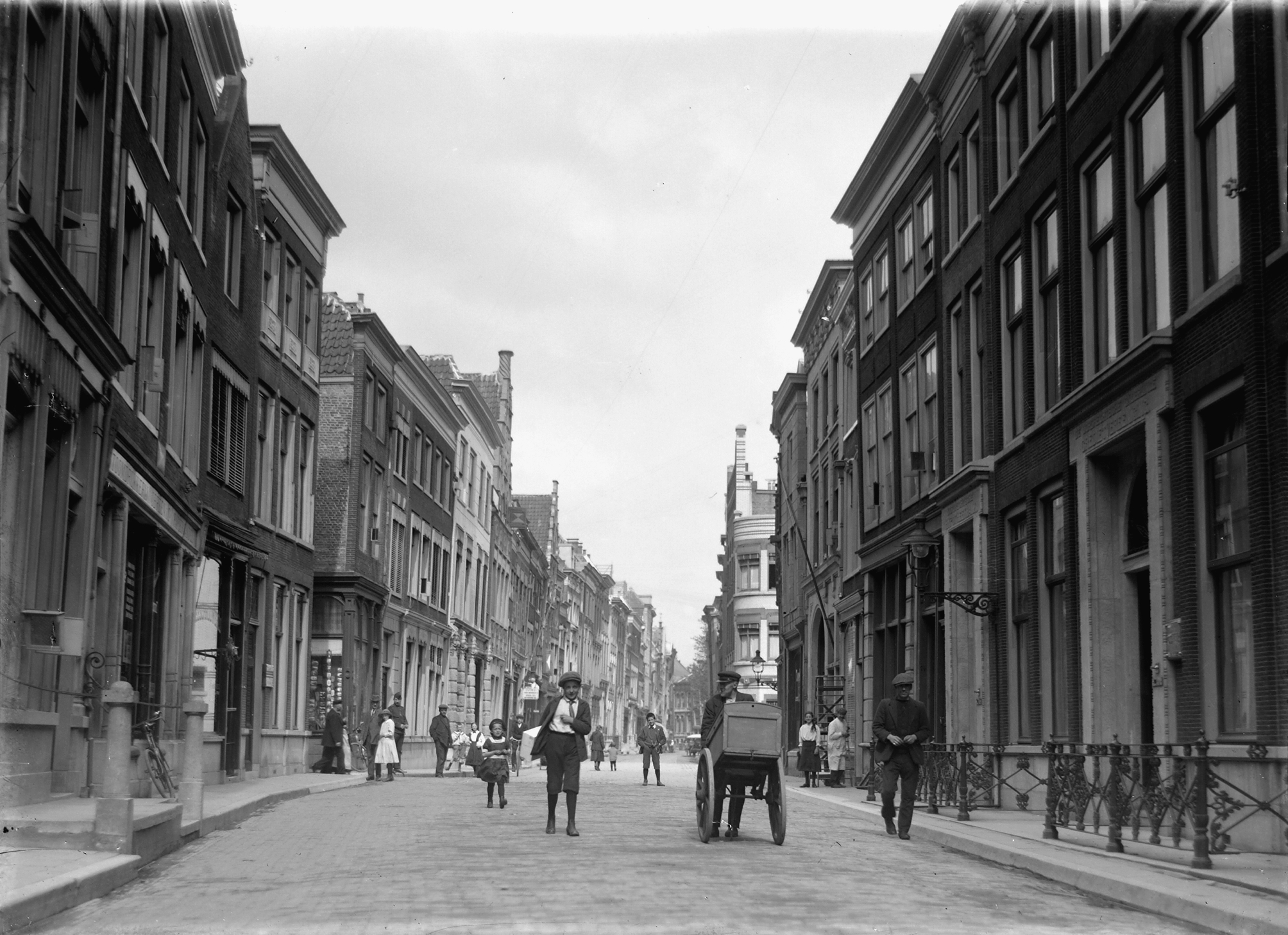 - De Groenmarkt ongeveer vanaf het stadhuis in de richting van de Visbrug (halverwege naar rechts). Bij het groepje mensen links bevindt zich de Vleeshouwersstraat.