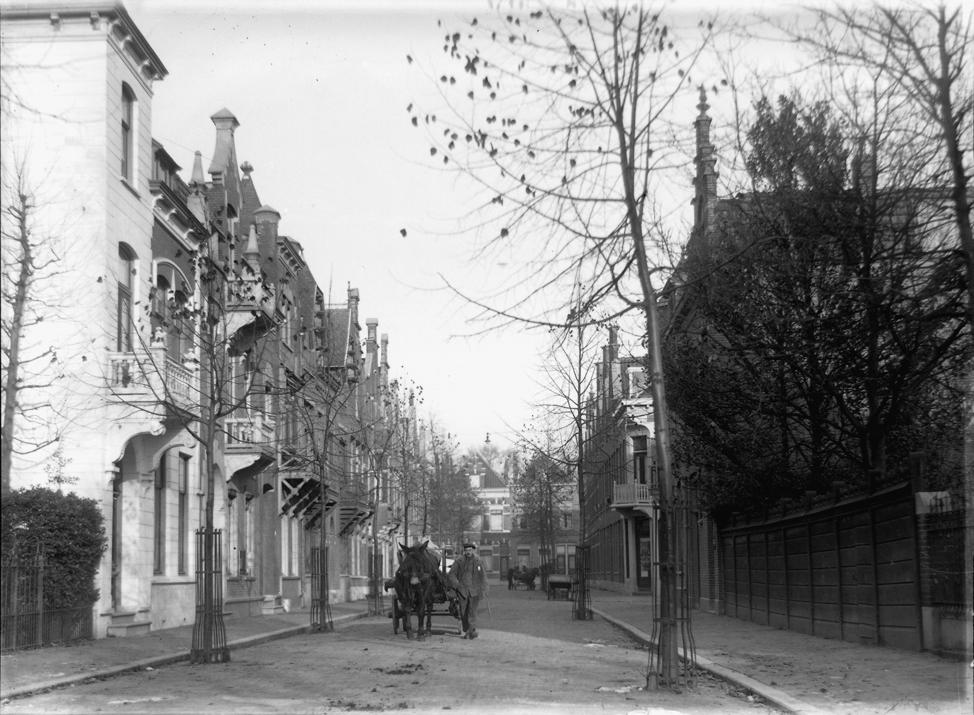 - De Cornelis van Beverenstraat in de richting van de Koningin Wilhelminastraat. Halverwege rechts ligt de Adriaan van Bleijenburgstraat.