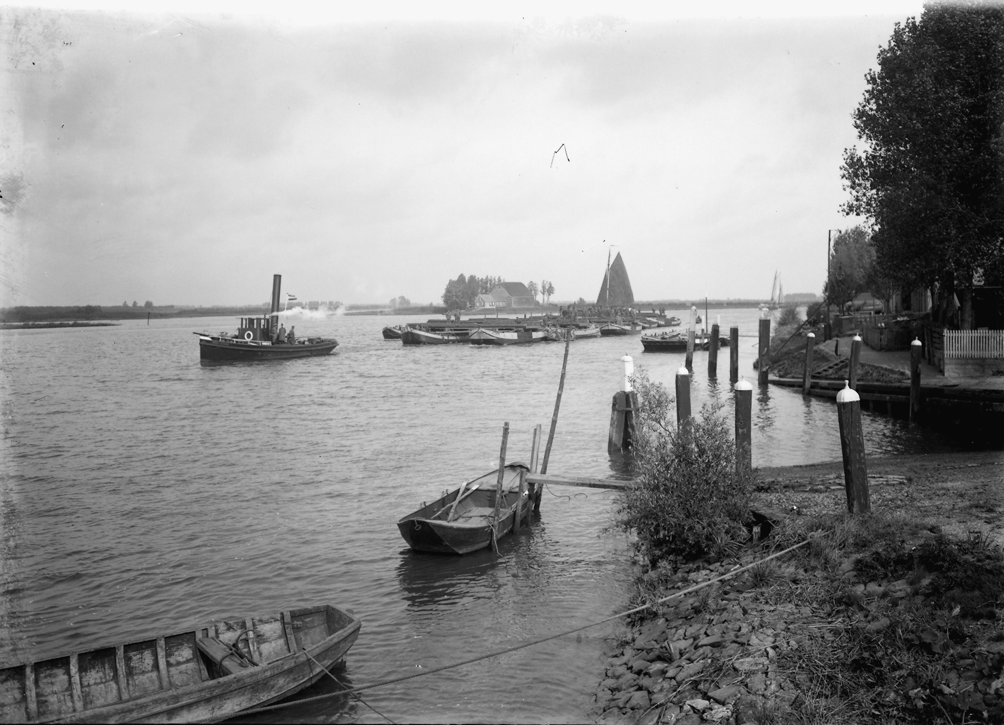 - boerderijen dukdalven / meerpalen pontonniers roeiboten stoomsleepboten zeilvaartuigen