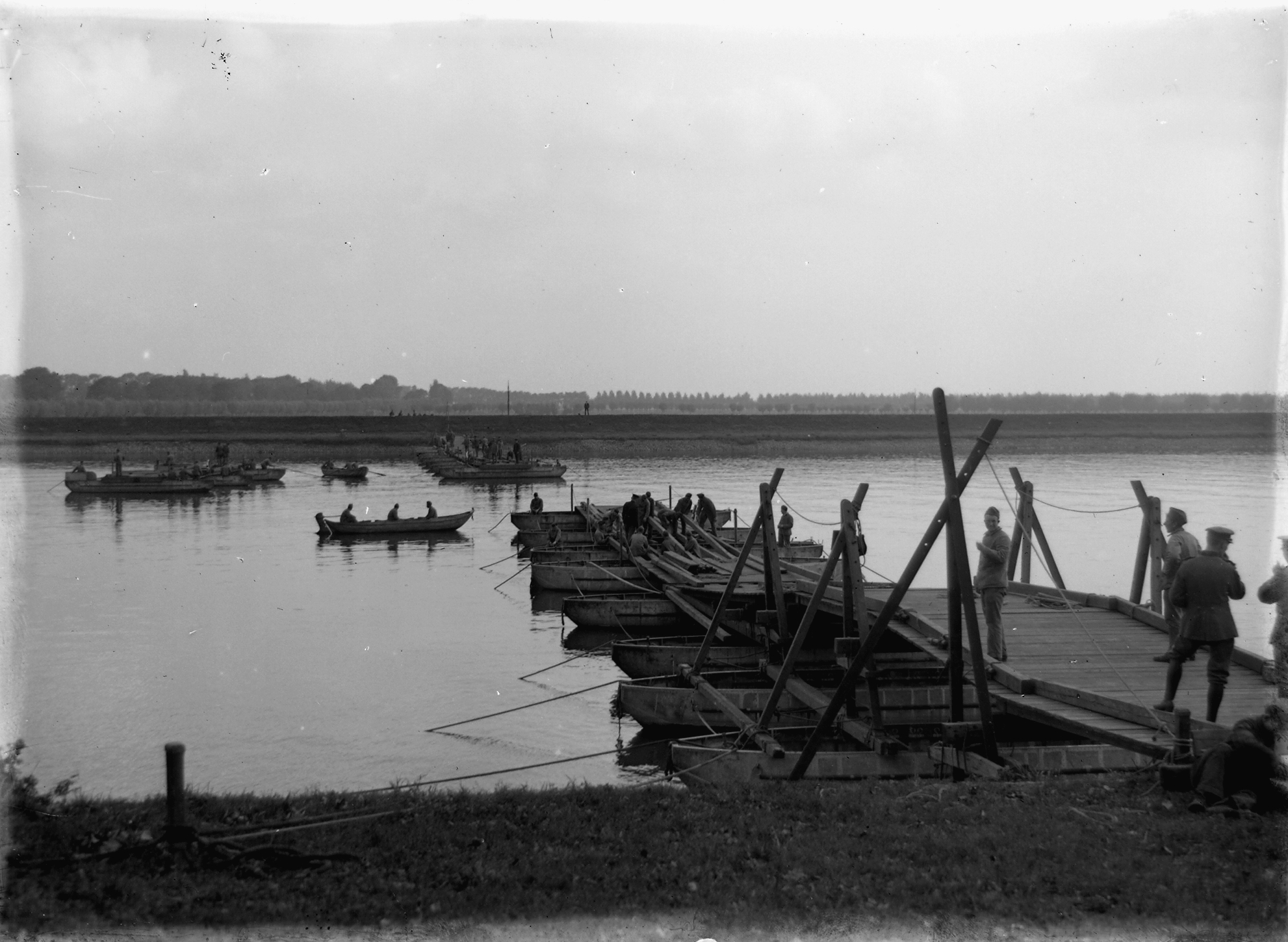 - Pontonniers met een pontonbrug over de Dordtsche Kil vanaf de Hoeksche Waard ten zuiden van 's-Gravendeel naar het oosten, het Eiland van Dordrecht.