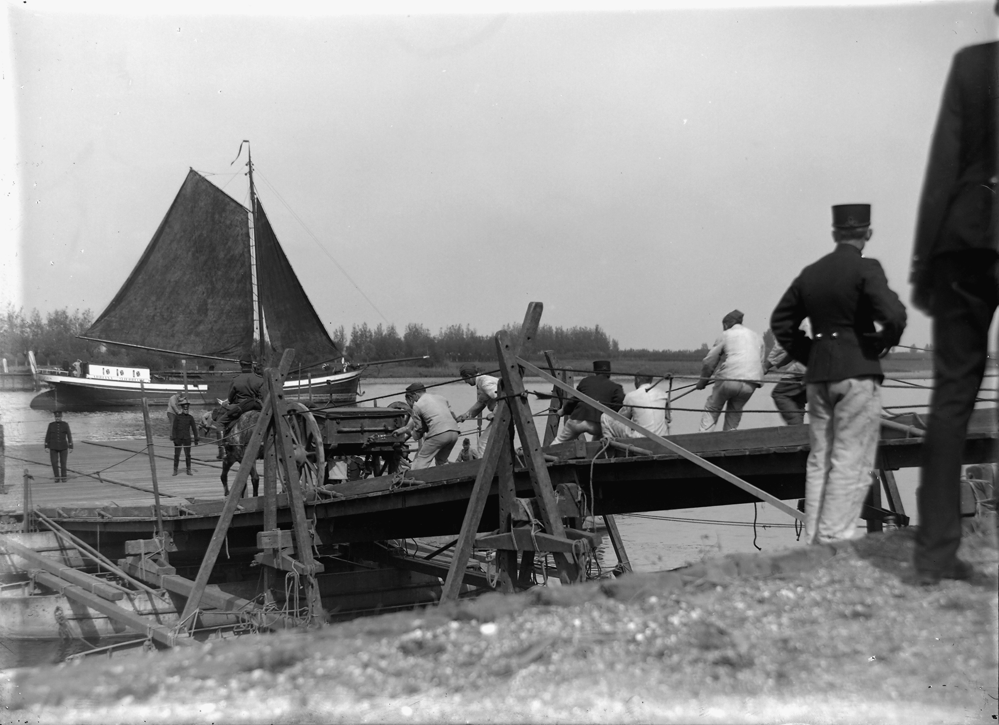 - paarden pontonniers zeilvaartuigen