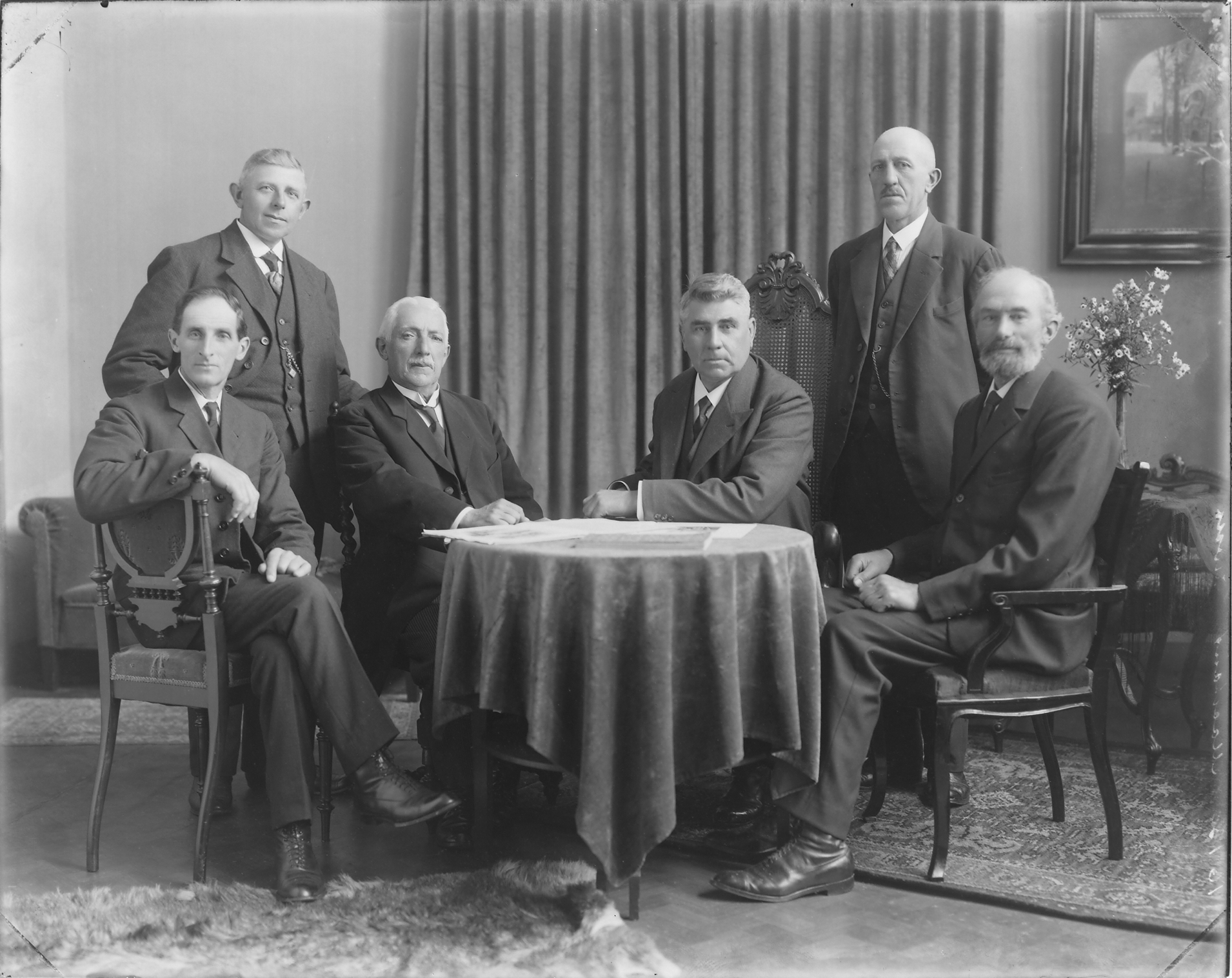Staand: Izaak van der Waal, Jan Herweijer; Zittend: Arie van den Hoek, Jan de Zeeuw (burgemeester), Dirk Maaskant, Lodewijk Zwart https://fotos.oudridderkerk.nl/imageview.aspx?path=2695+Polders+en+Polderbesturen%2f005+Polderbesturen+algemeen%2f2695.005.007.jpg%2f