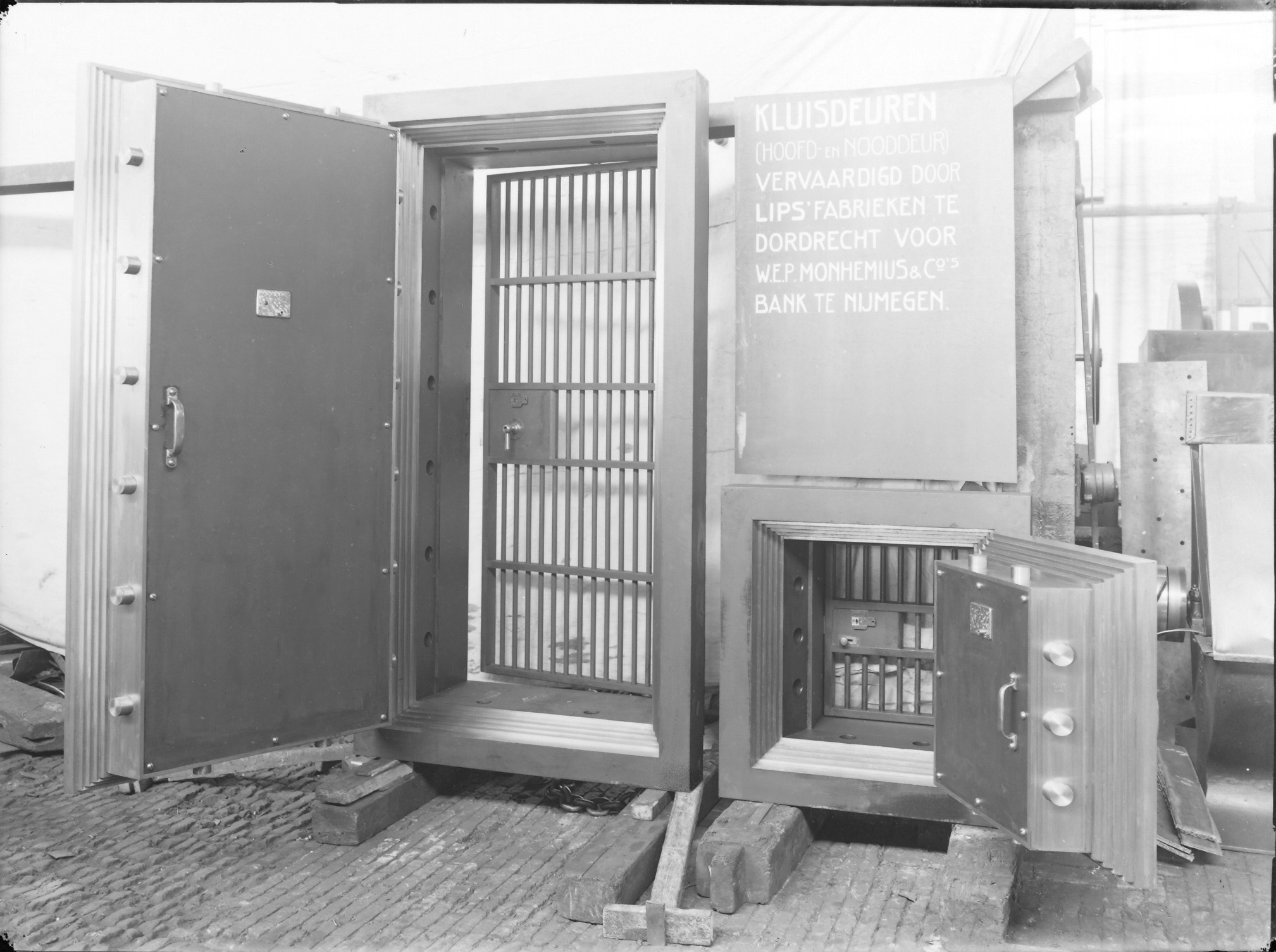 Toegangsdeur voor kluisruimte met rechts een Z.G. nooddeur van Fa. Lips