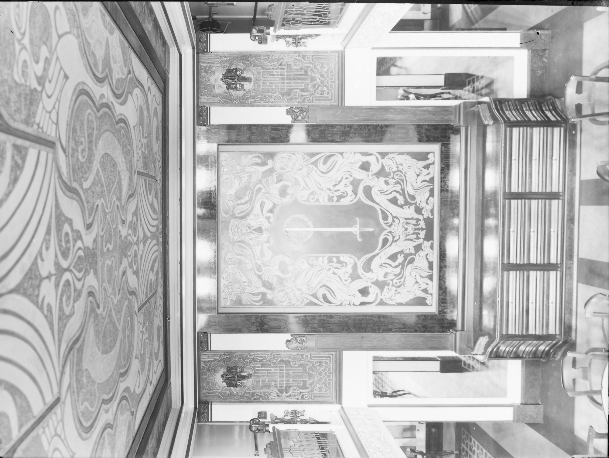 Versiering Eetsalon 1e klasse in het Stoomschip Jan Pieterszoon Coen, gebouwd in 1915. In 1940 tot zinken gebracht door de Kon.marine tussen de pieren als blokschip 14 mei 1940. (zie ook verslag van Pim bij 556_5693)