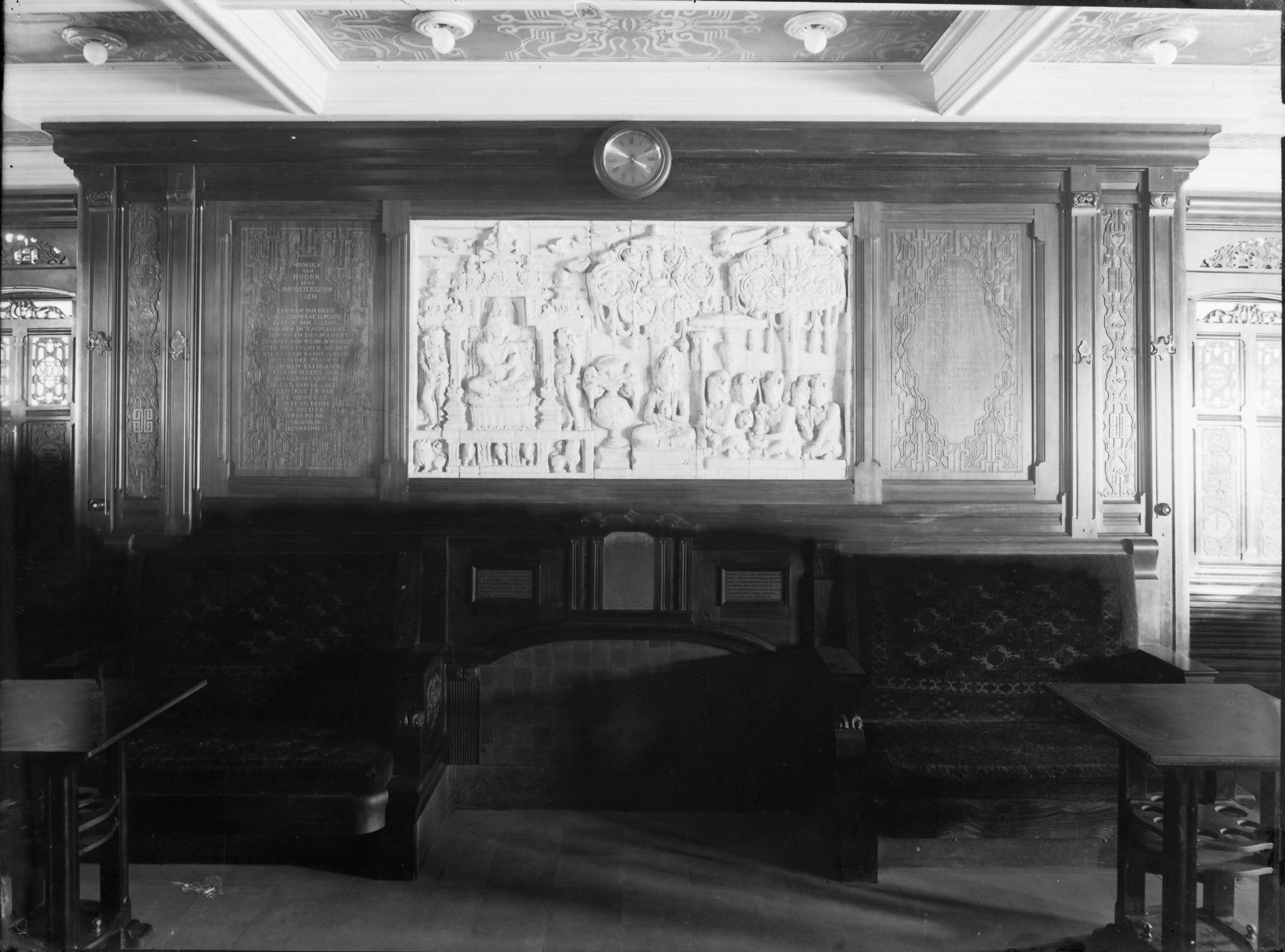 Wandversiering rooksalon 1e klasse in het Stoomschip Jan Pieterszoon Coen, gebouwd in 1915. In 1940 tot zinken gebracht door de Kon.marine tussen de pieren als blokschip 14 mei 1940. (zie ook verslag van Pim bij 556_5693)