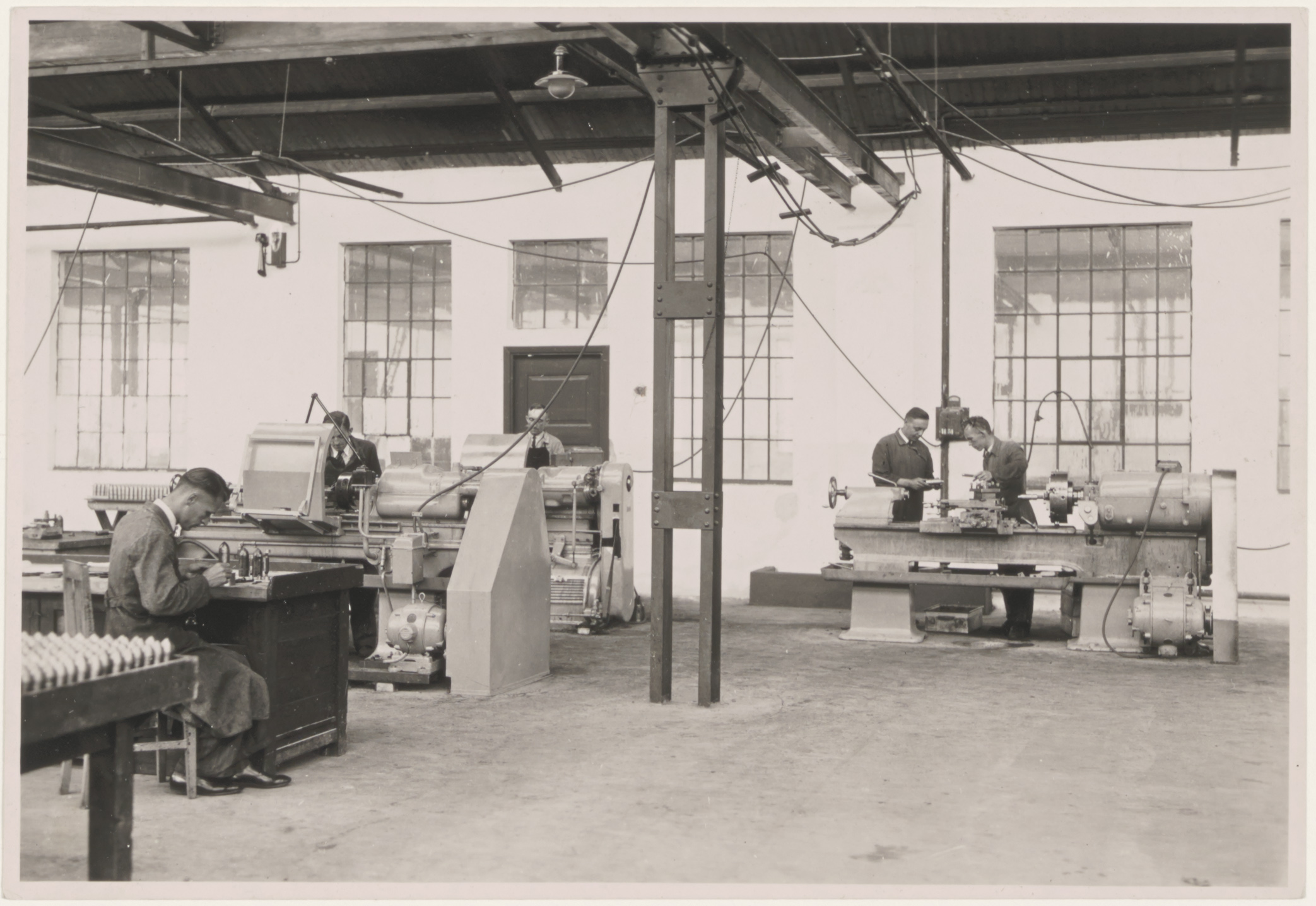 - Lampenafdeling. Op de foto is te zien hoe lampen worden gemaakt voor in een radio.