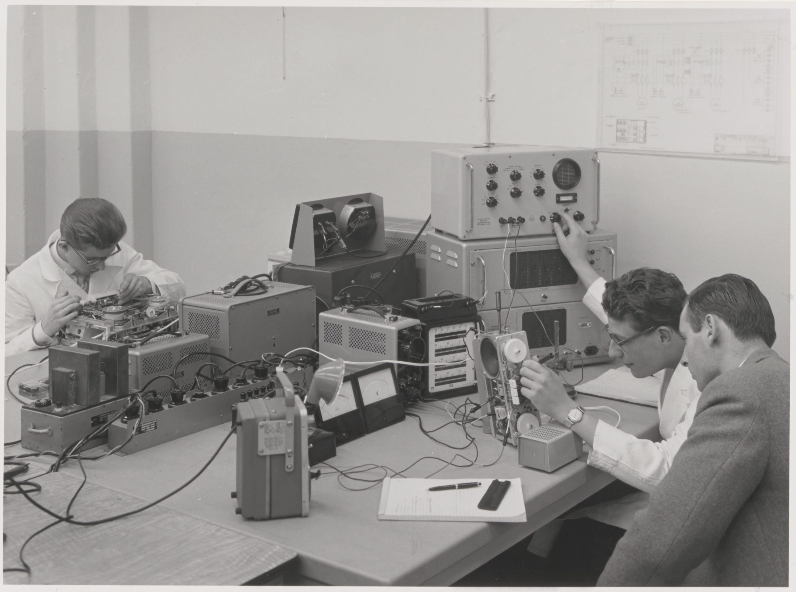 - Testafdeling. Op de foto word een radio getest.