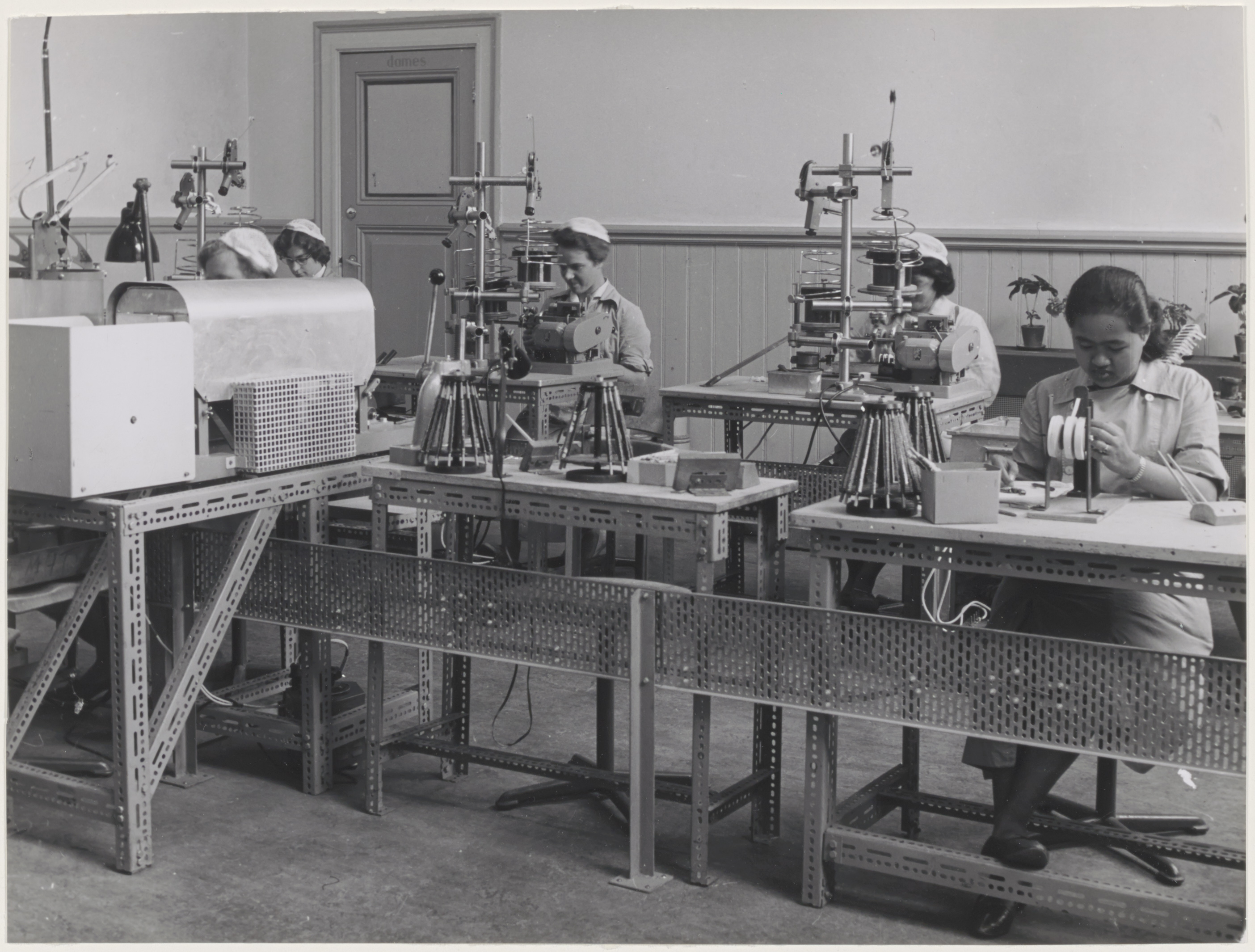 Montageafdeling. Het in elkaar zetten van spoelen voor diversen motoren.