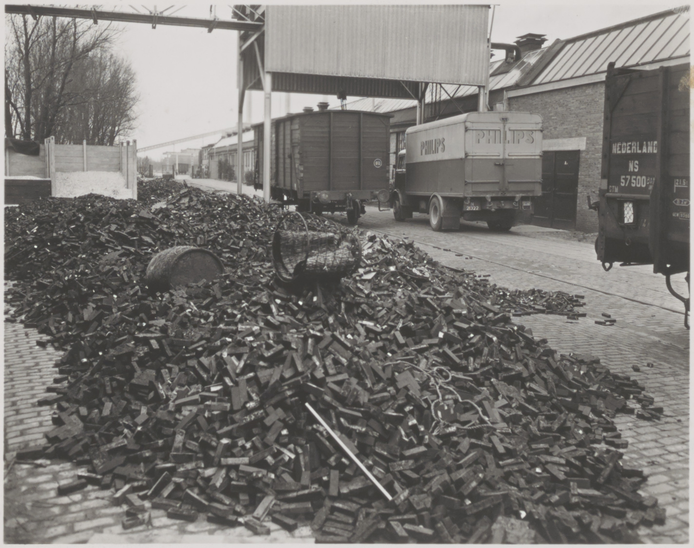De trein kwam vermoedelijk van het rangeerterrein bij het Centraal Station en ging over de Oranjelaan en de Pr. Hendrikbrug. Links stond de grote Electriciteitscentrale, die steenkolen nodig had, hoewel ze ook een eigen haven hadden. Verderop zat ook een grote brandkasten fabriek van Lips, die ook wel staal gekregen zal hebben per trein.