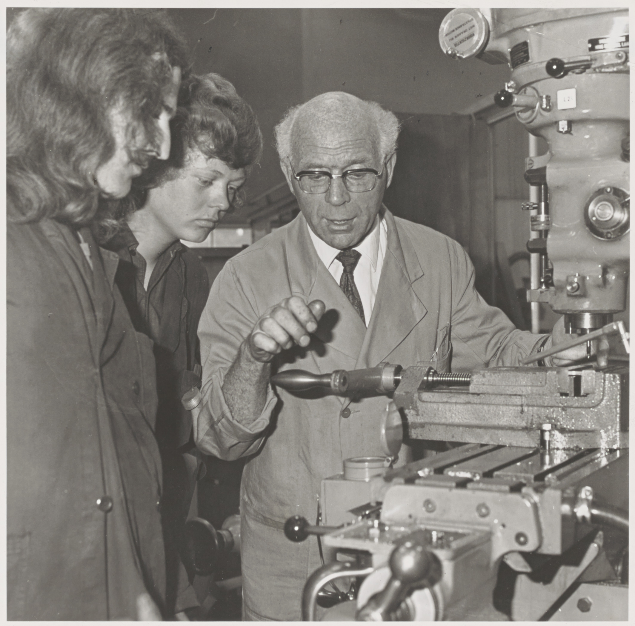- Leraar met zijn leerlingen van de interne opleiding van Johan de Witt / Philips.