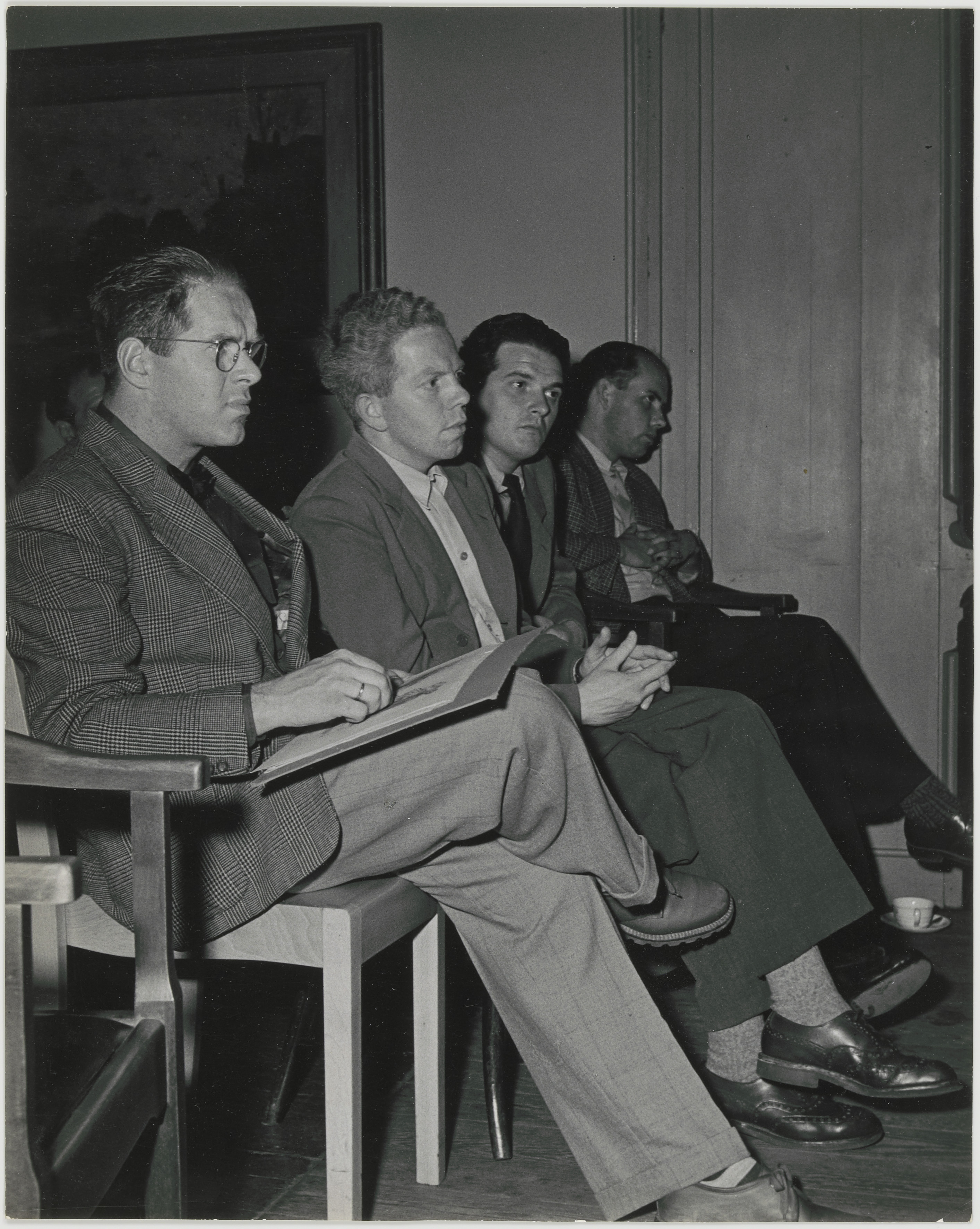 Leden van Pictura. V.l.n.r. Otto Dicke, Philip Kouwen, onbekend, Beerden.
