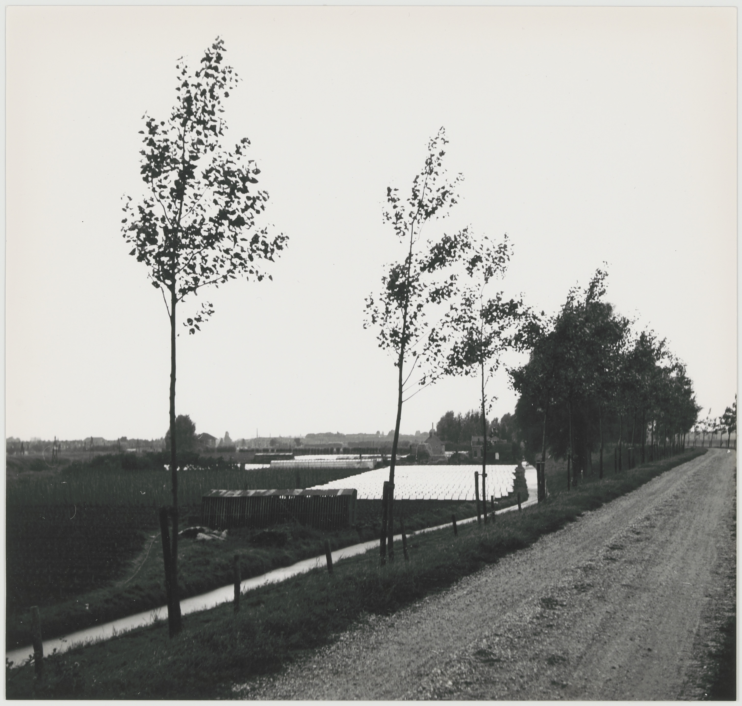 - De Noordendijk ten oosten van het Sportpark bij de tuinderij van Schotman, naar het westen gezien.