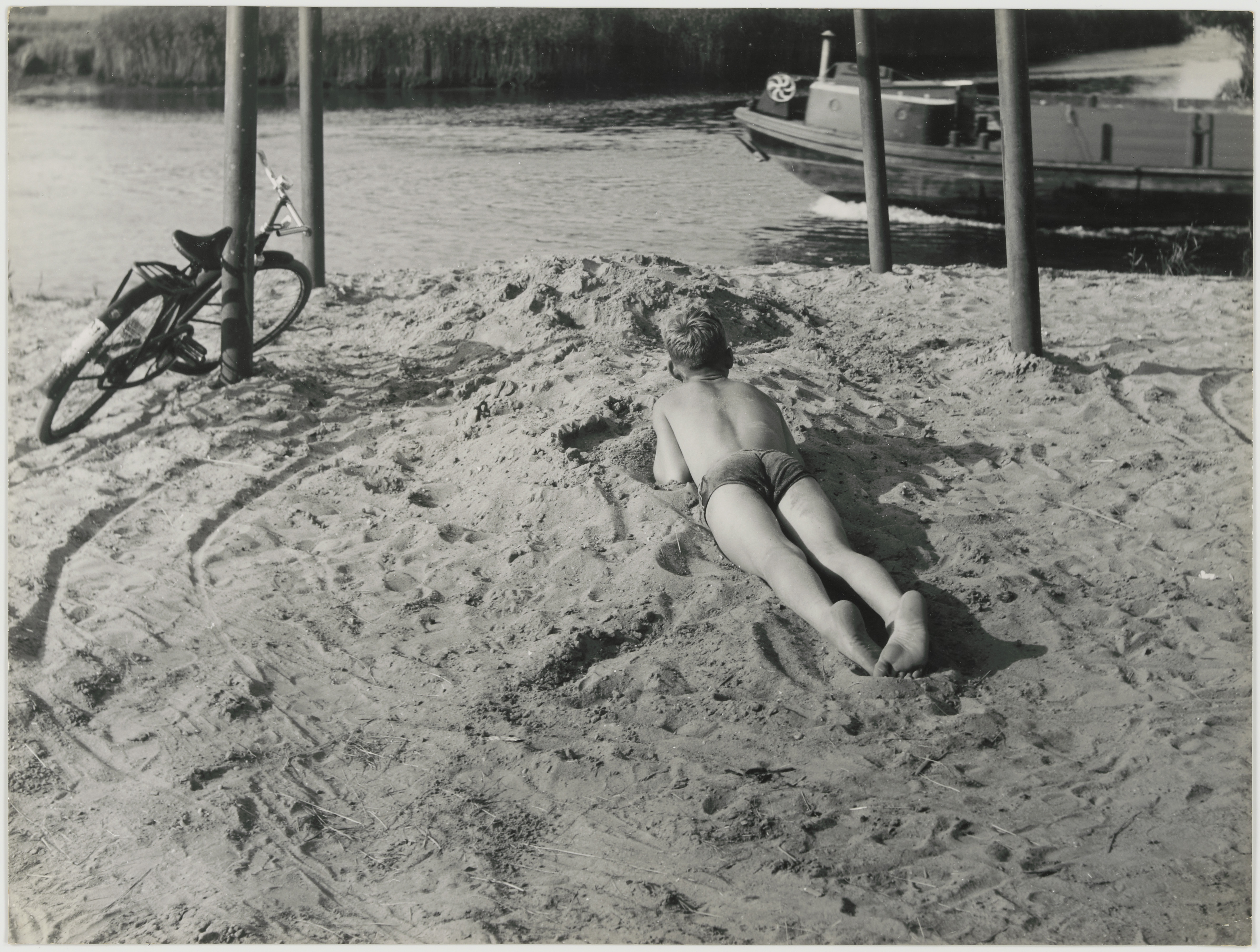 Even rusten en zonnen op een strandje tijdens een fietstochtje.