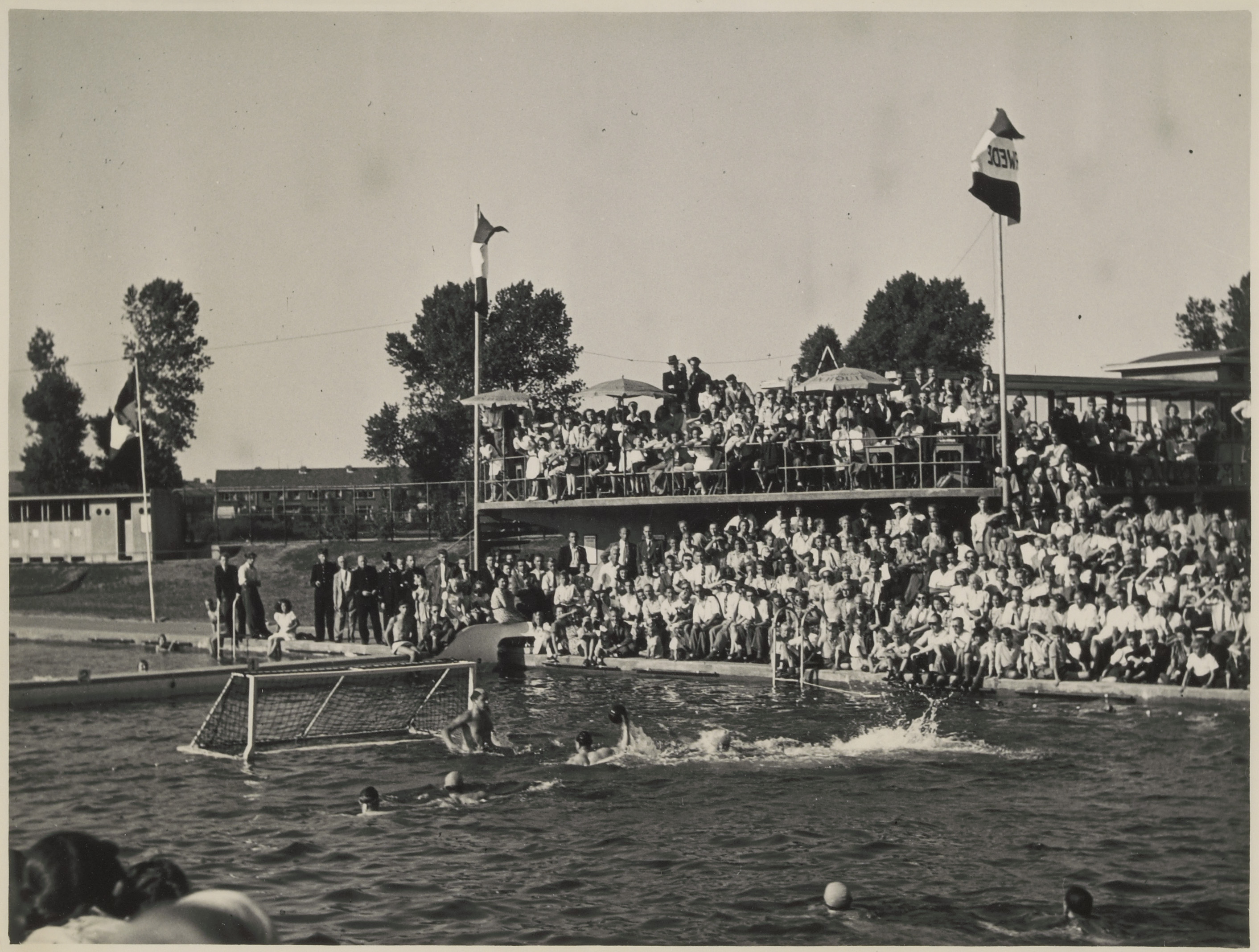 - Waterpolowedstrijd in het Wantijbad. Op de achtergrond de Maasstraat.