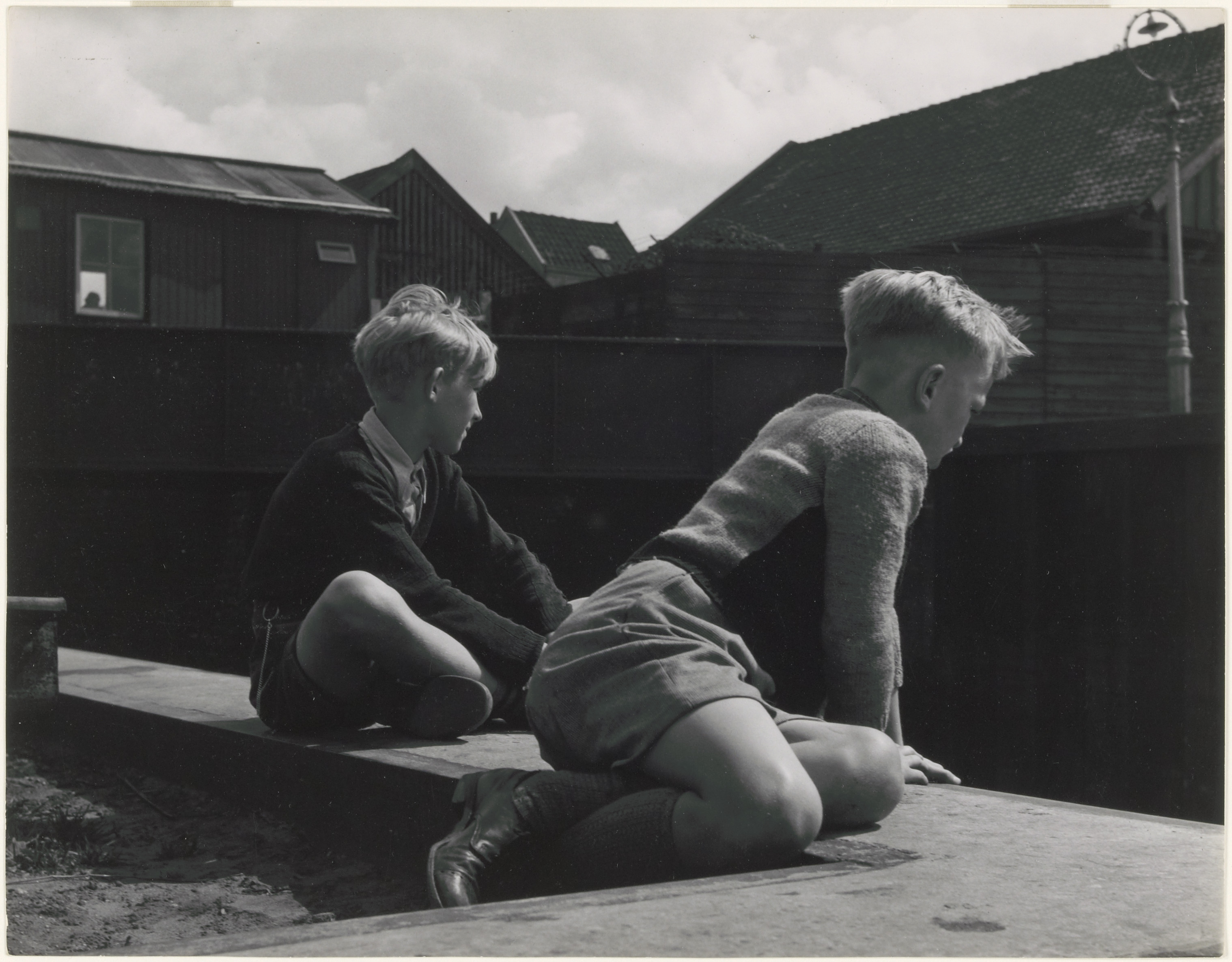 Jongens op de spoorbrug over het Papegat bij de hoek van de Handelskade.
