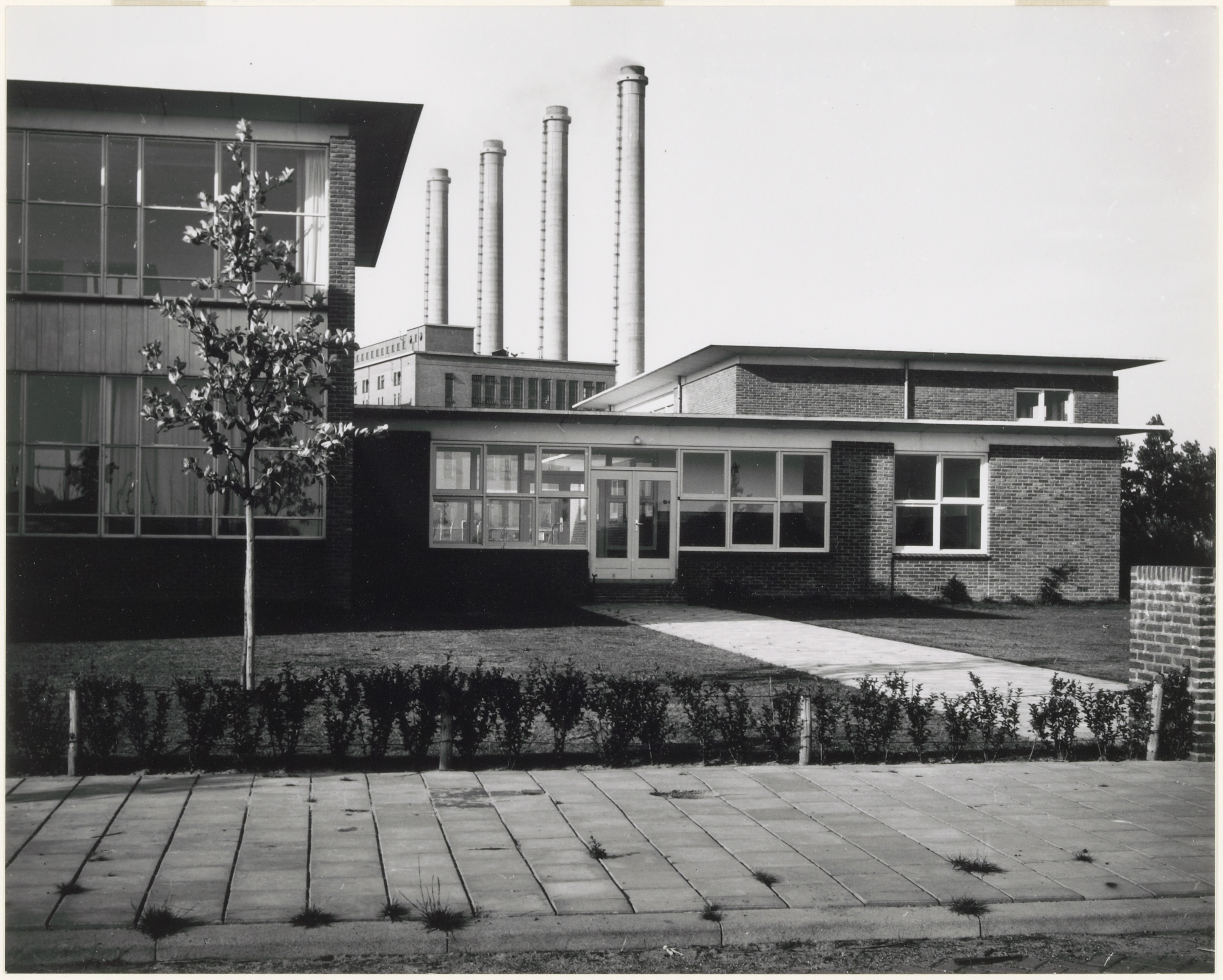 - De Merwedeschool aan de Beinemastraat, de Merwedecentrale op de achtergrond.