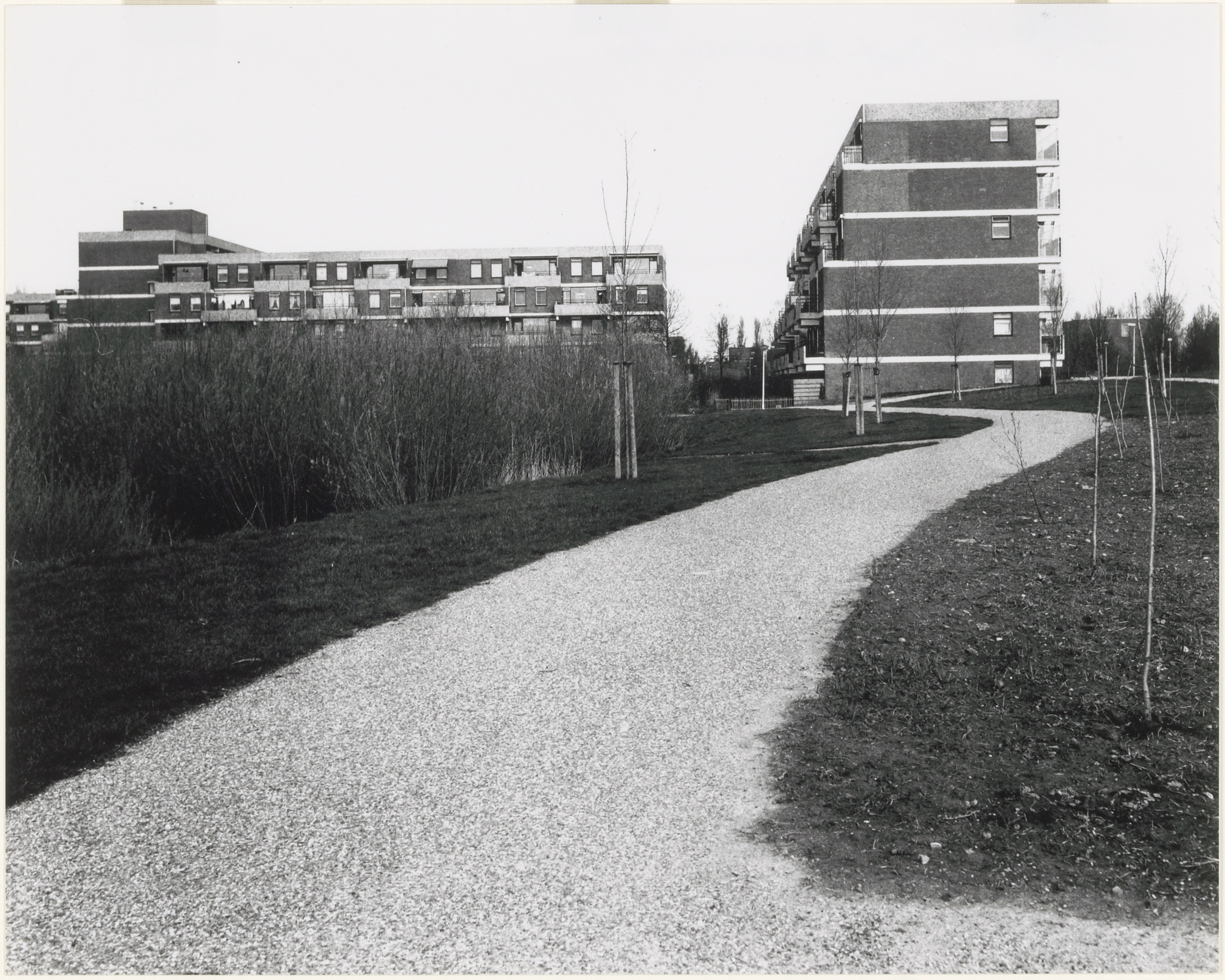 - Flats in de Haringvlietstraat tussen tussen Zijldiep en Hoendiep, gezien vanaf het Generaal S.H. Spoorpad.