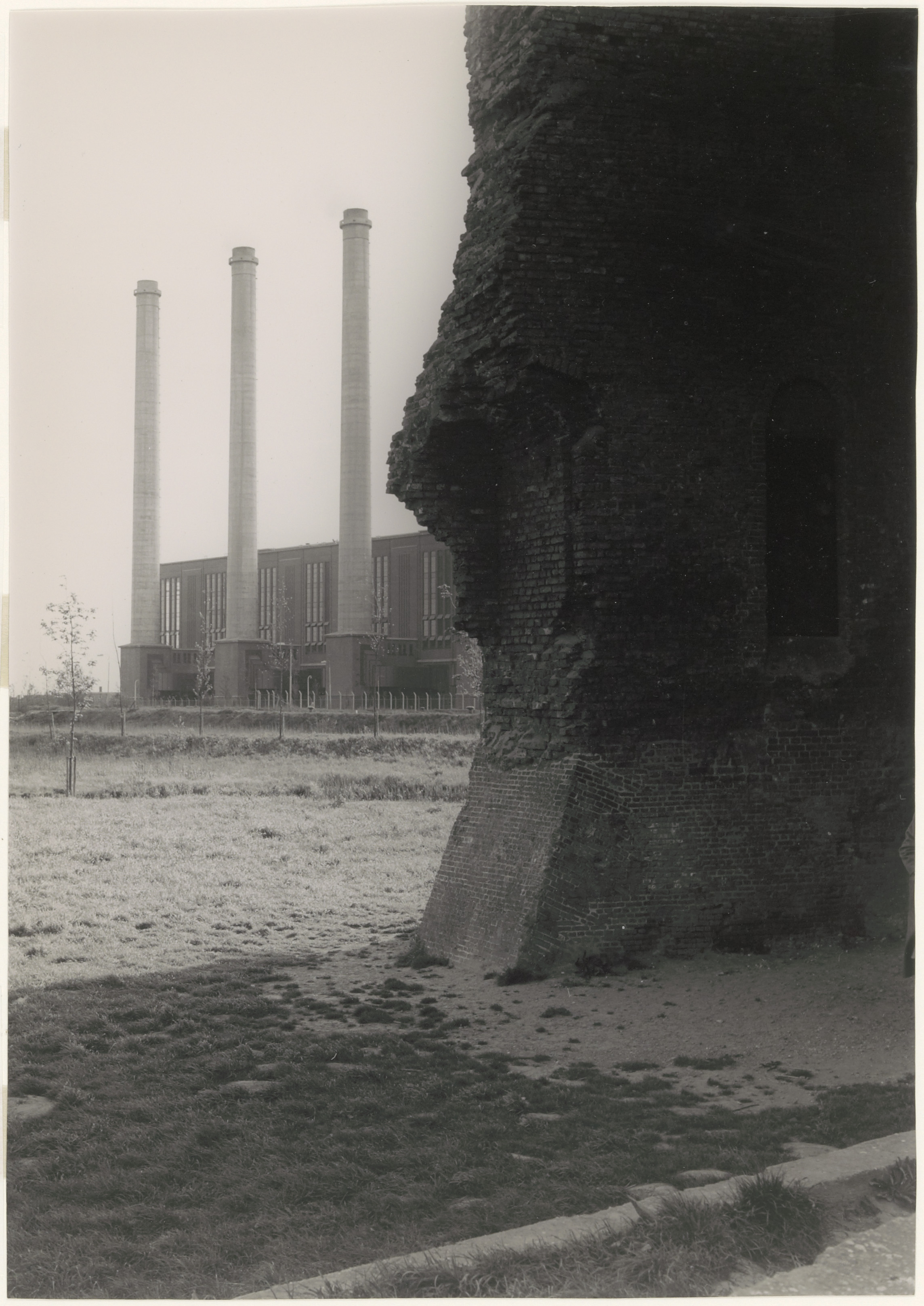 De ruïne van Huis te Merwede en de Merwedecentrale op de Kerkeplaat.