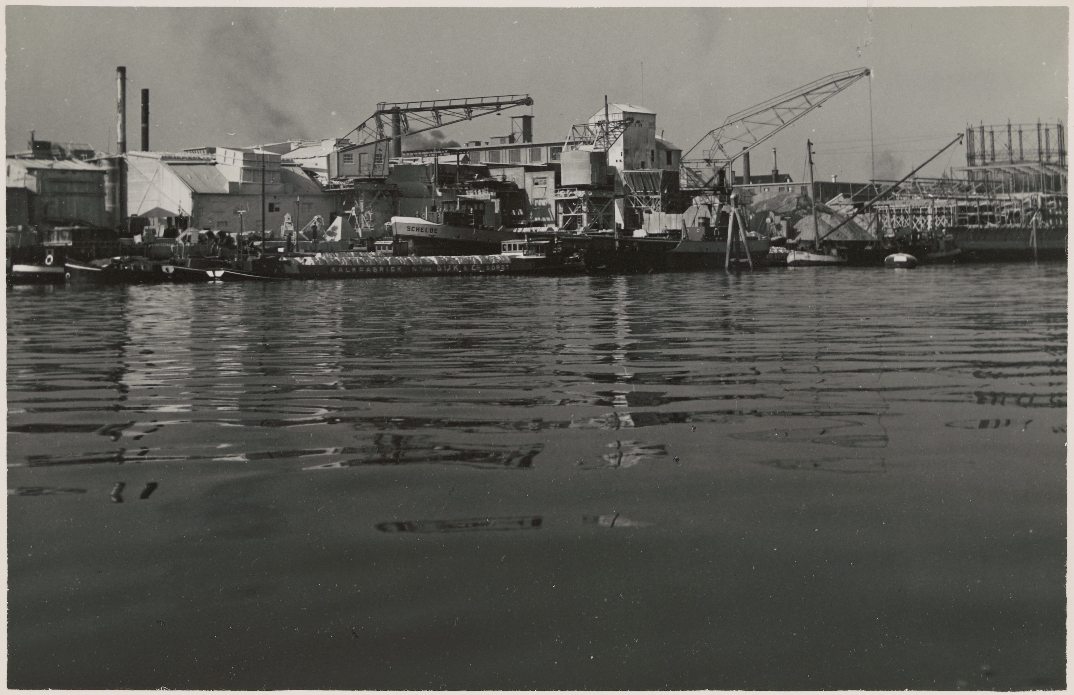 Zie alleen Kalkfabriek van Dijk aan het Wantij in beeld. Scheepswerf Hoebee ligt links, niet zichtbaar op de foto.