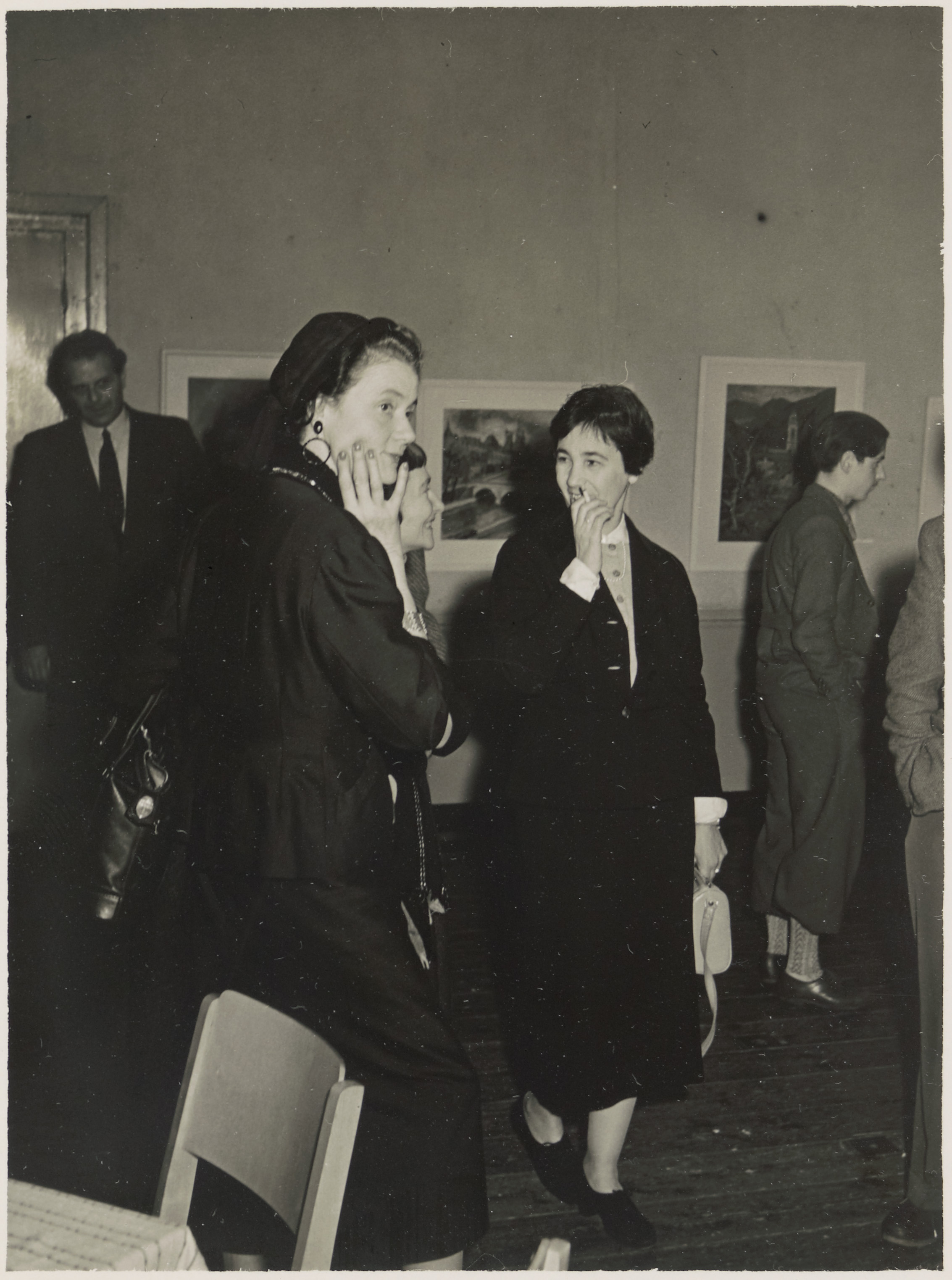 Bezoekers bij de opening van een tentoonstelling van werken van Otto Dicke in Pictura.