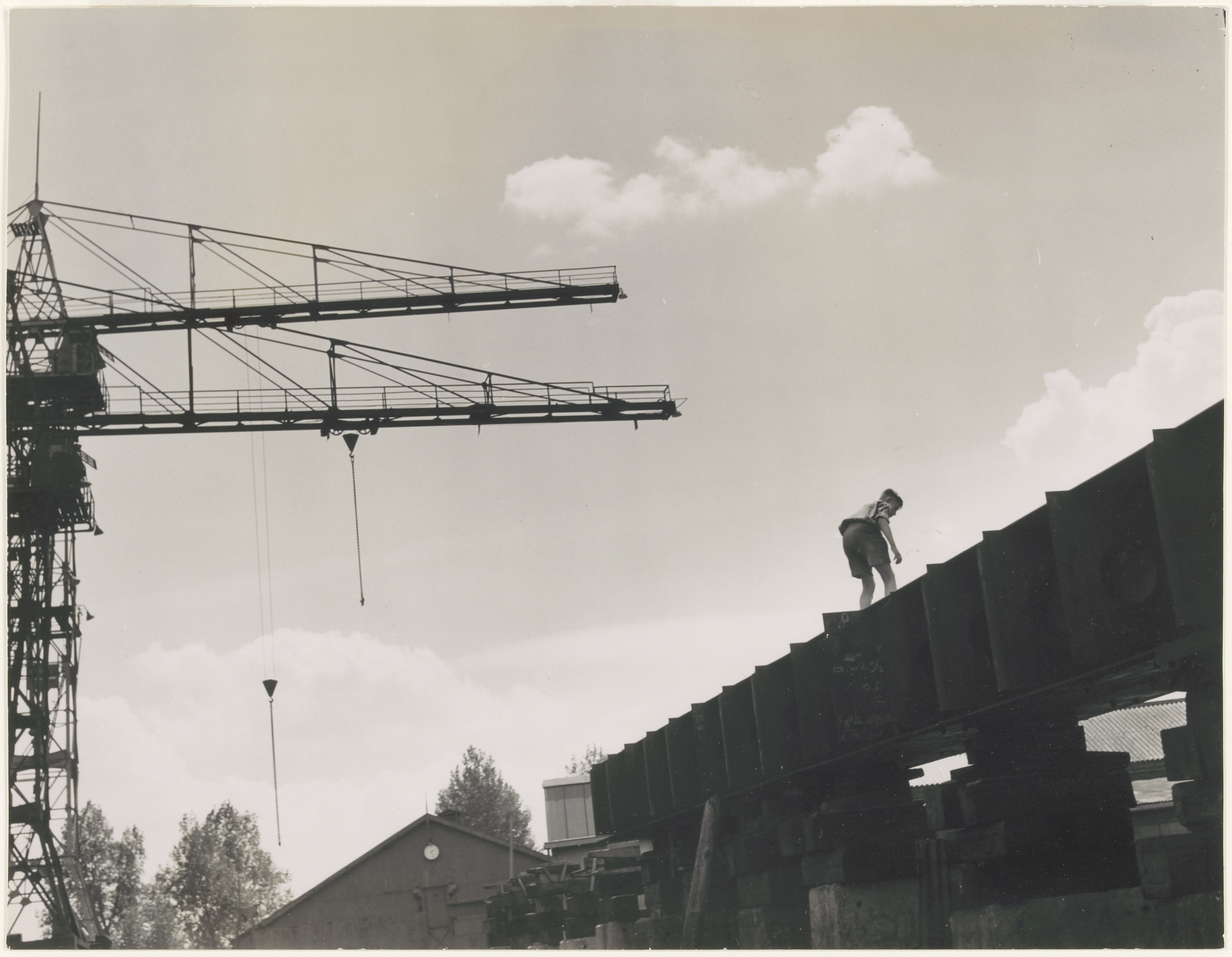 - Jongen op een stellage bij scheepswerf De Biesbosch aan de Maasstraat.
