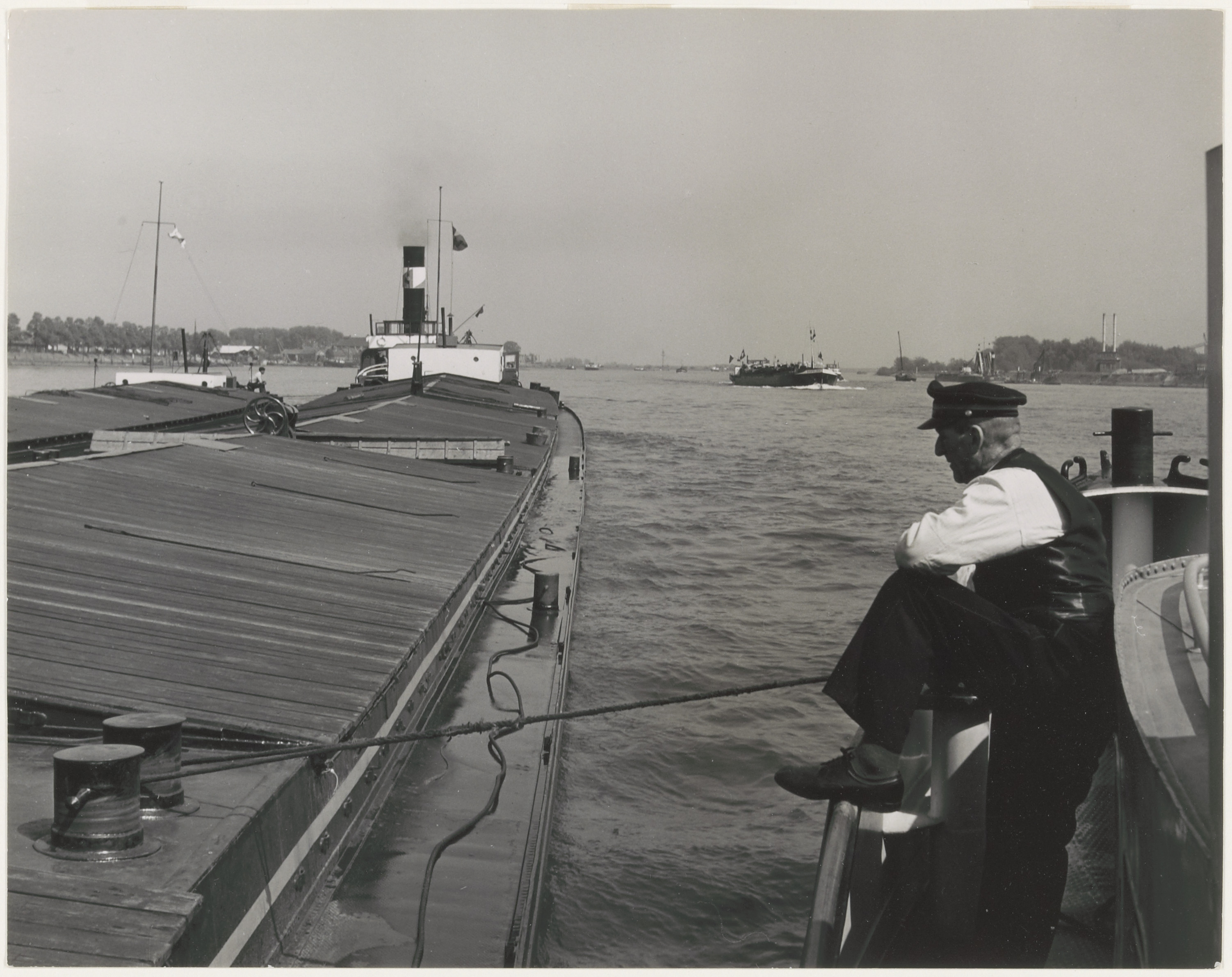 Het sleepschip aan bakboord (L) is de Horand van de Nederlandsche Rijnvaartvereeniging NV te Rotterdam. Ik hoor graag wat het voor beugels zijn die op de luikenkap liggen van het grotere aan stuurboord (R) varende schip. Afbeelding gemaakt vanuit het zelfde standpunt, maar dan naar voren, als dat van 623_5573. E.e.a. op aangeven van Wim S. Zie voor de oriëntatie ook 552_325729.