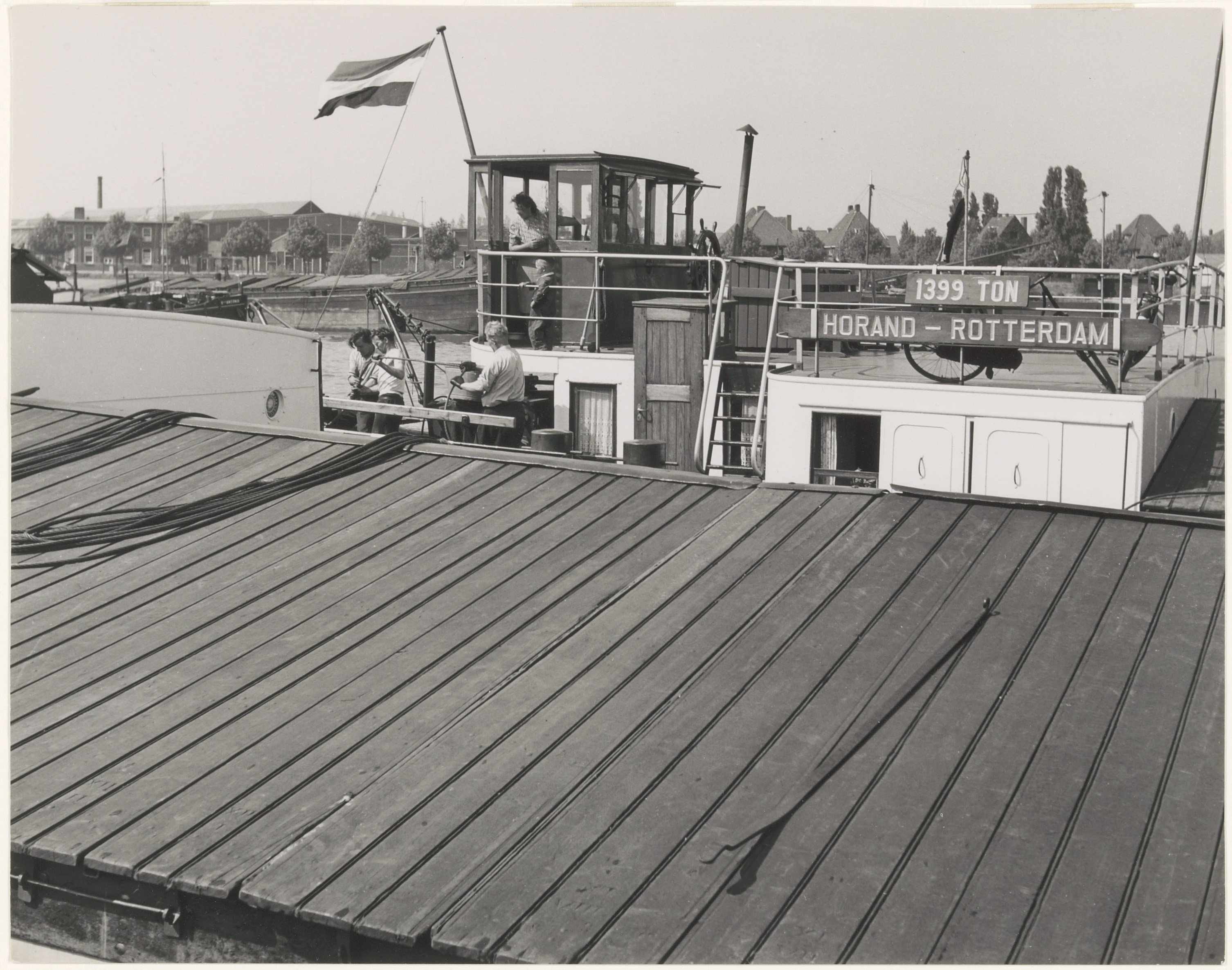Maar ik ben het volledig met je eens, goed gezien! De Horand was eigendom van de Nederlandsche Rijnvaartvereeniging NV in Rotterdam en mogelijk het andere sleepschip en de stoomsleepboot ook. Zou die sleper de 'Asgard' kunnen zijn? Hij houdt hier verkeerde wal, zie de blauwe vlag in zwart/wit :) en koerst recht op de Grote Kerk van Papendrecht af, want ook de locatie heb je goed gezien en is zoals je aangeeft Papendrecht. Voor de twijfelaars, zie 552_325729. De lange beugels die op de luikenkap liggen (deze en afbeelding 623_5565) zijn die voor de luikenverzegeling dat je weet? Mooi om de 'Charitas' op 552_325729 in actie te zien.