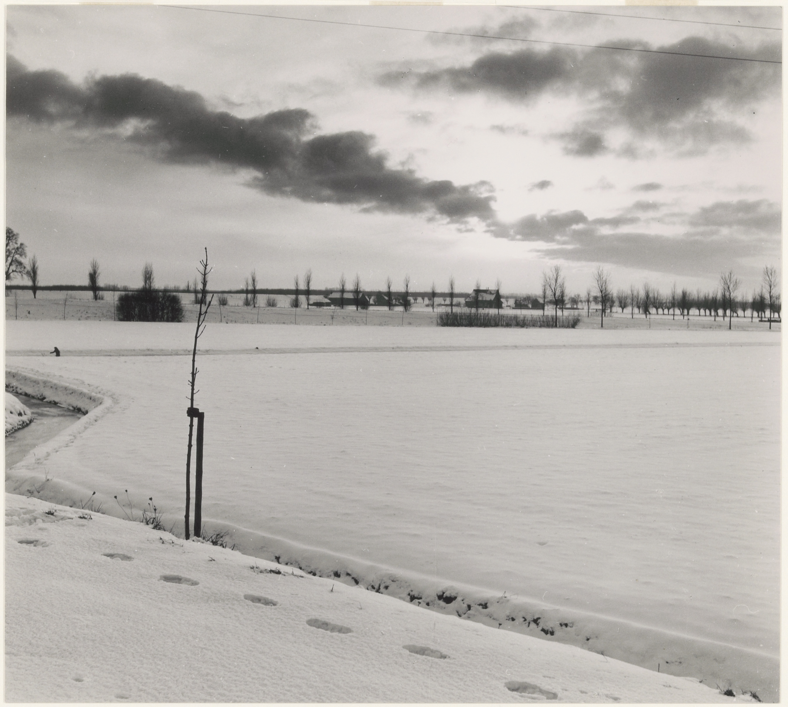 Besneeuwde Aloisepolder vanaf de Zeedijk bij gemaal Staring richting Provincialeweg en …