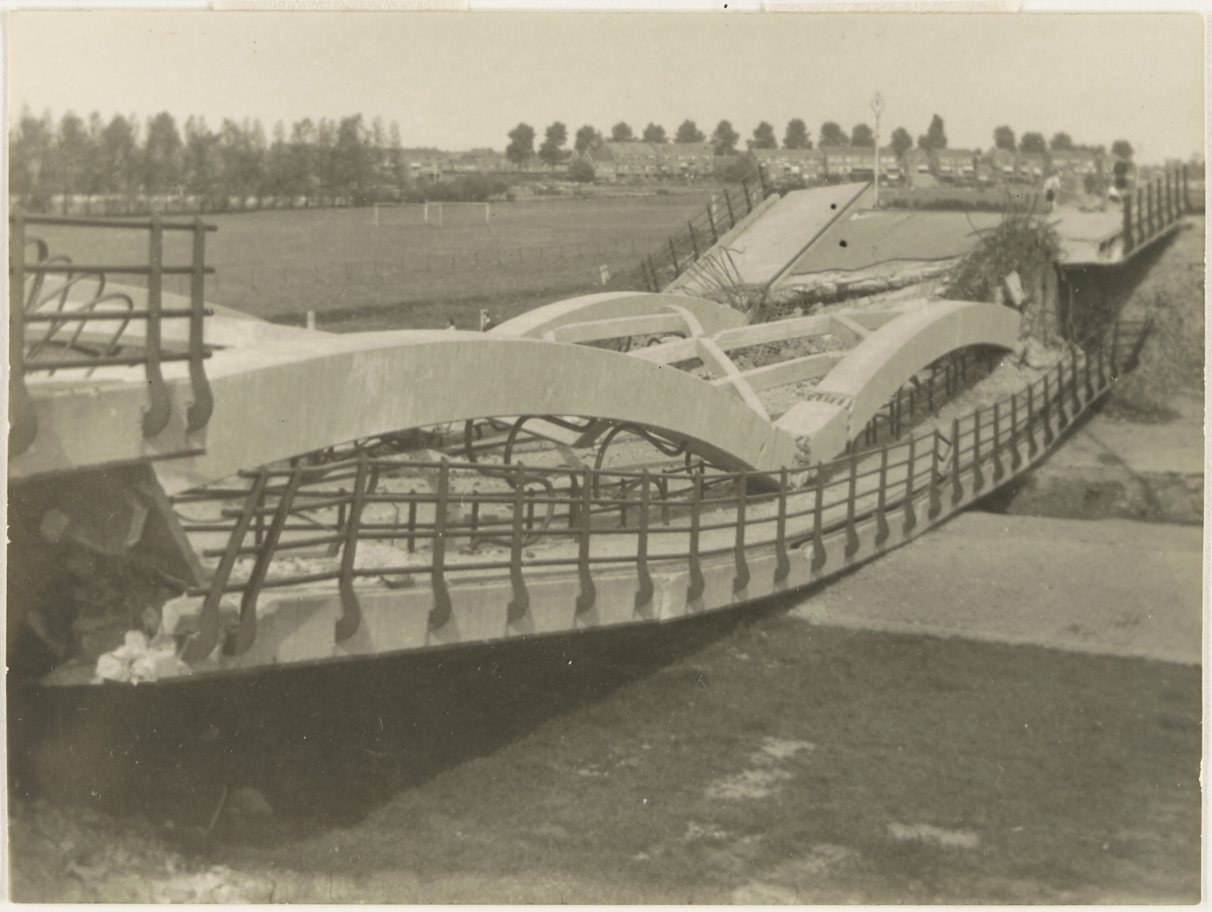 De in de Tweede Wereldoorlog vernielde brug over de A16 tussen de Mijlweg en de …