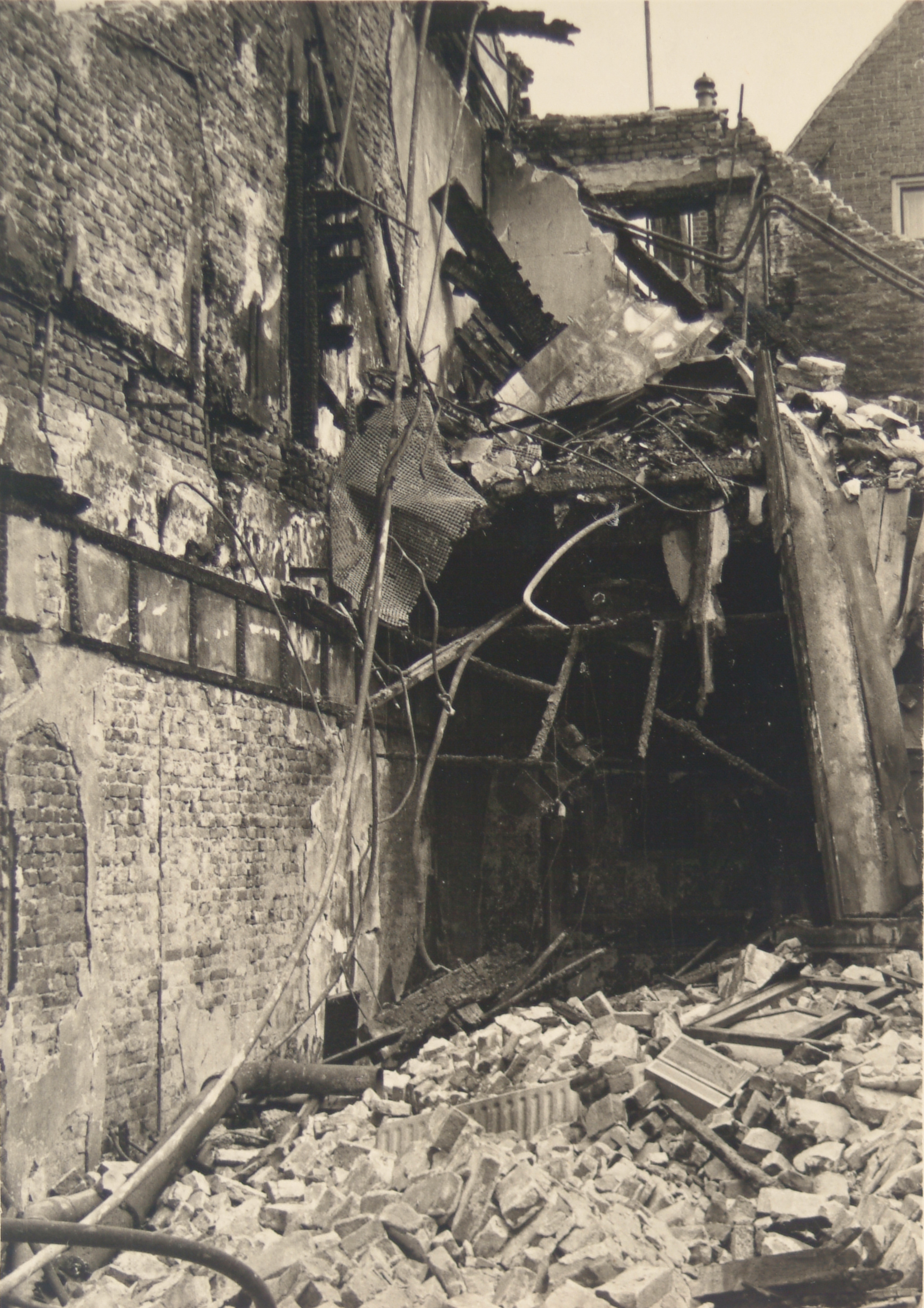 Oorlogsschade aan huizen aan de Albert Cuypsingel