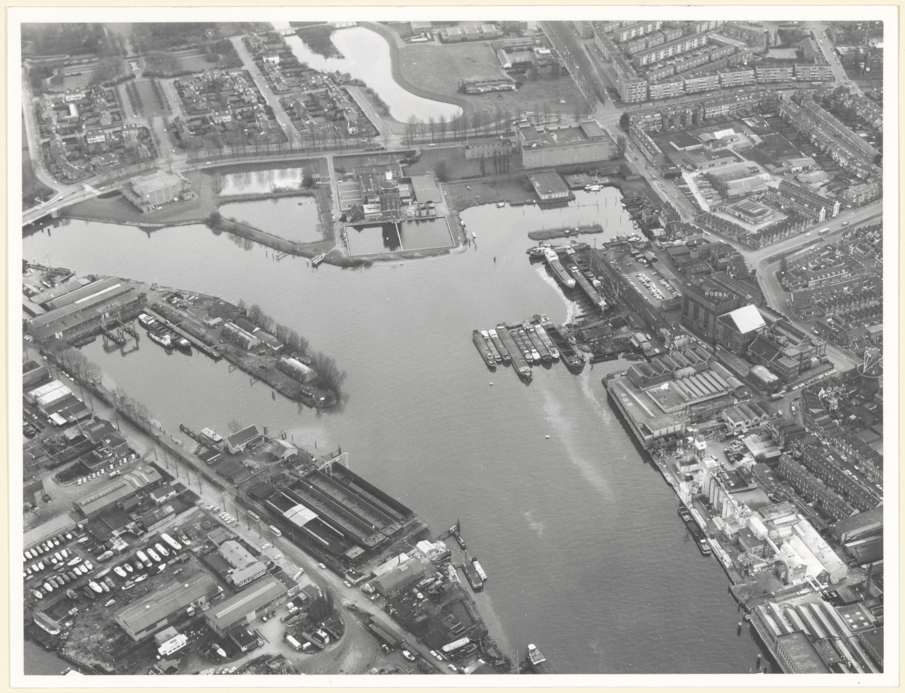 Het Wantij, vanuit het noordwesten gezien; rechts bedrijven aan de Lijnbaan en de …