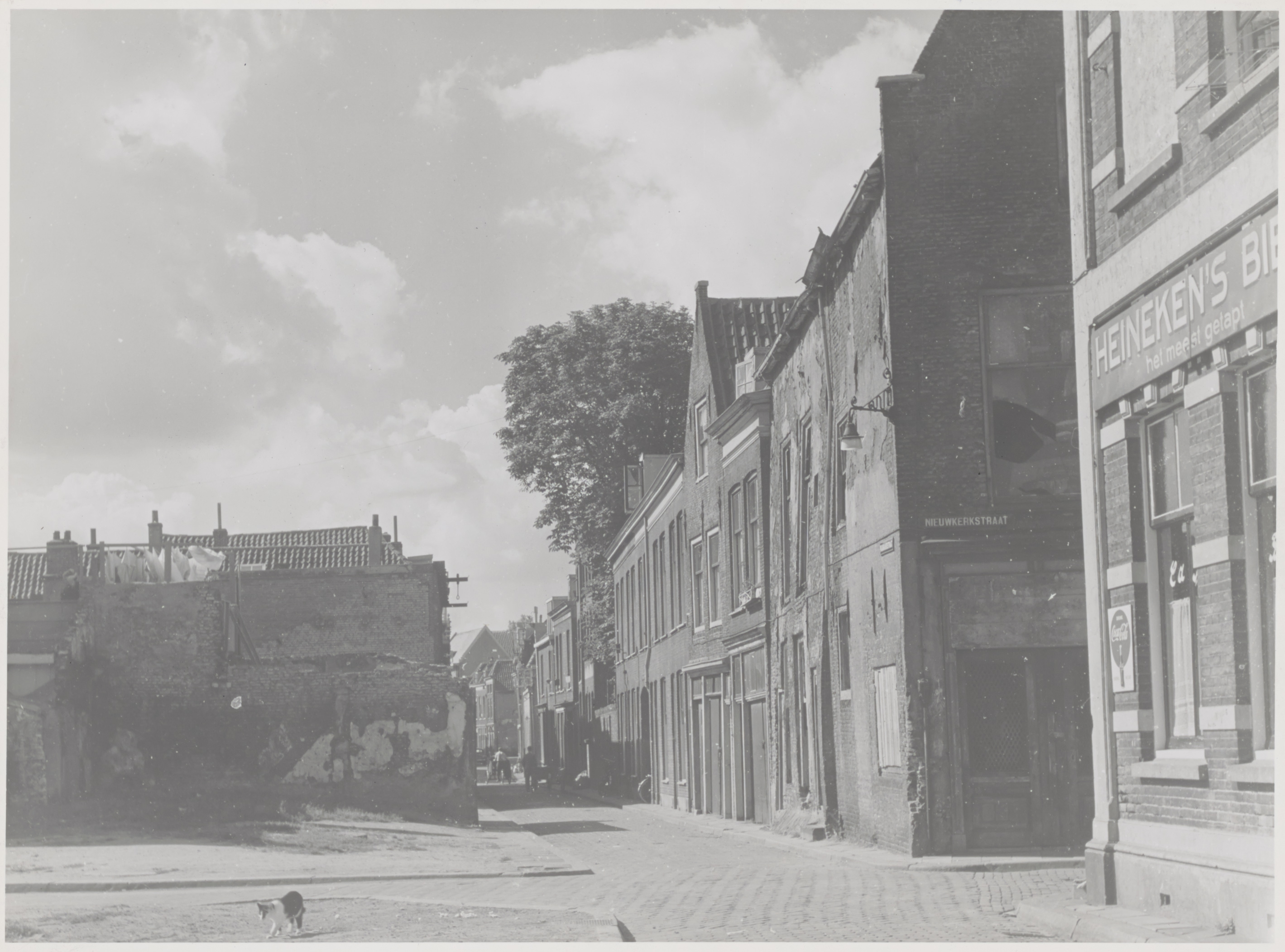 De Wijngaardstraat bij de kruising met de Nieuwkerkstraat. Rechts staat café Versluis.