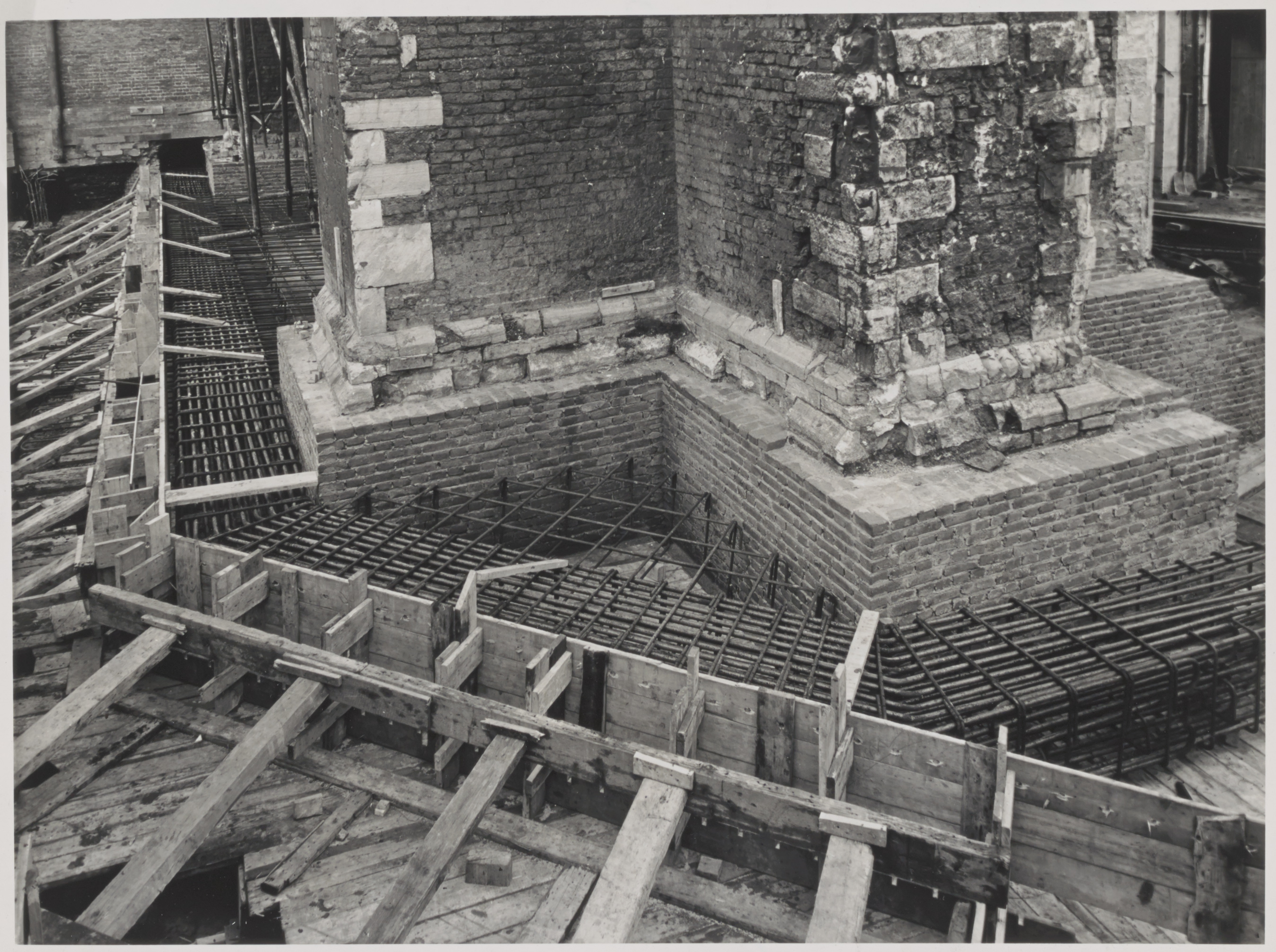 Funderingswerkzaamheden aan de toren van de Grote Kerk om verdere verzakking tegen te …
