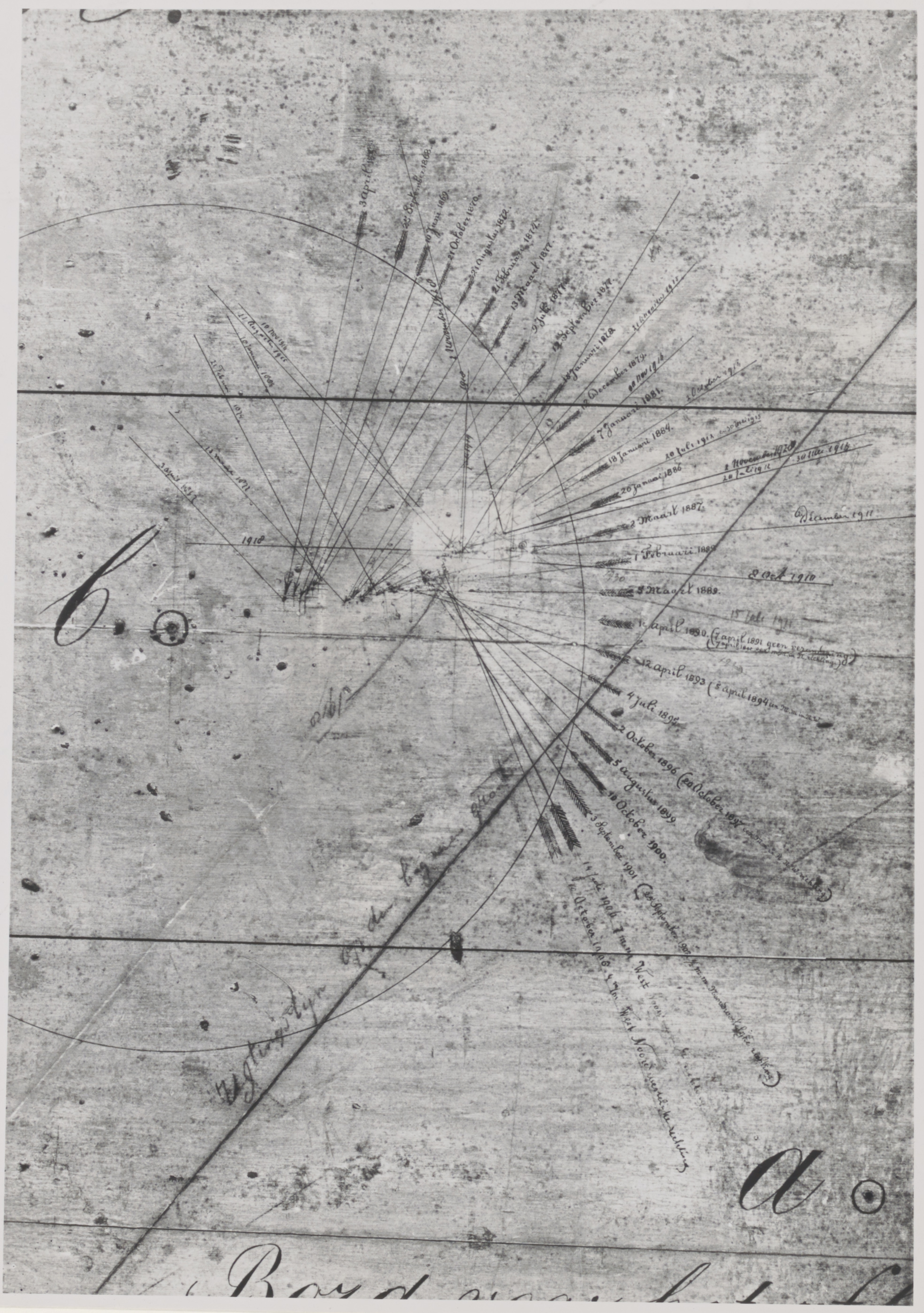 Gedeelte van het bord met registraties van met een schietlood onderzochte verticale …