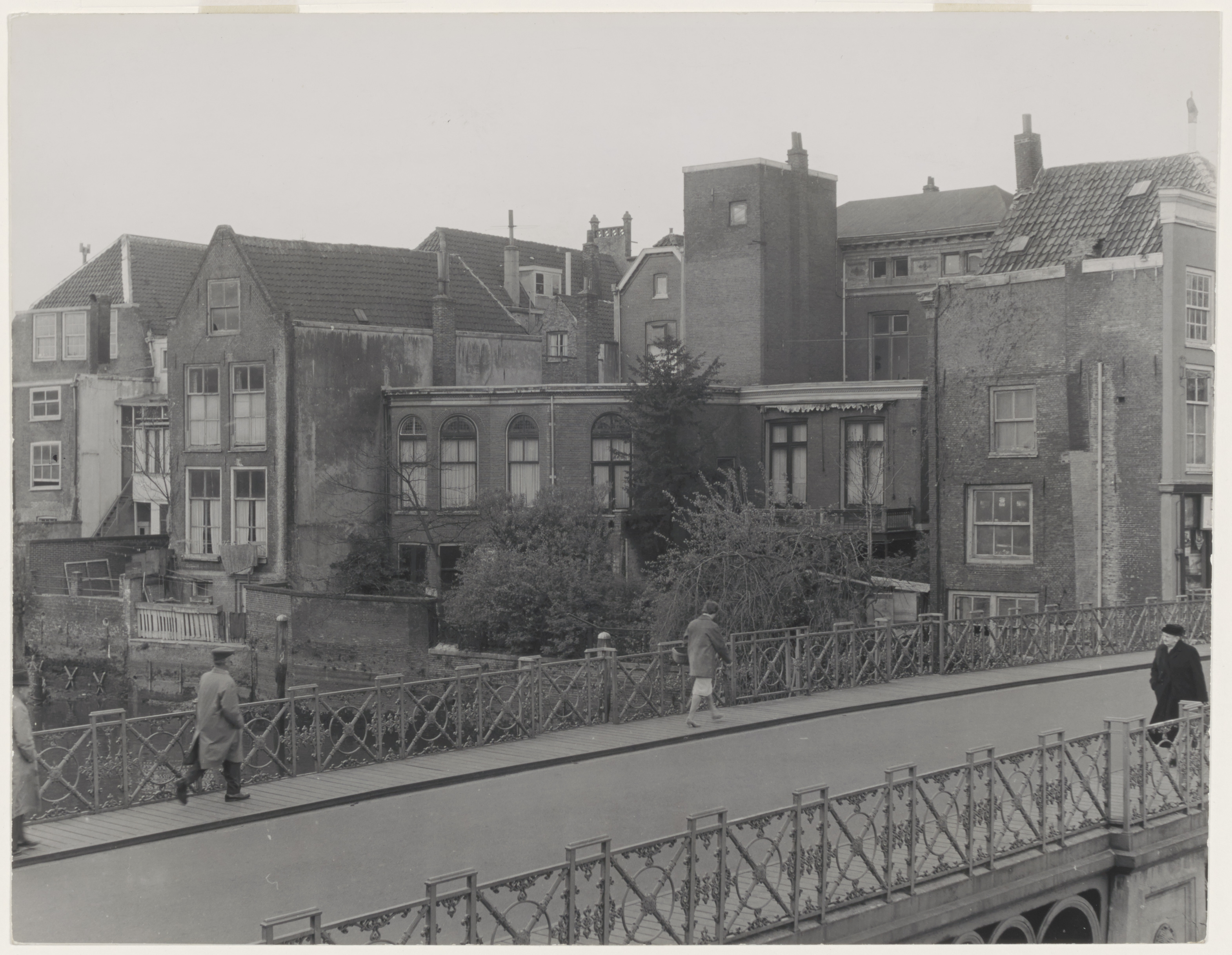 - De Nieuwbrug over de Wijnhaven en achtergevels van panden Wijnstraat.