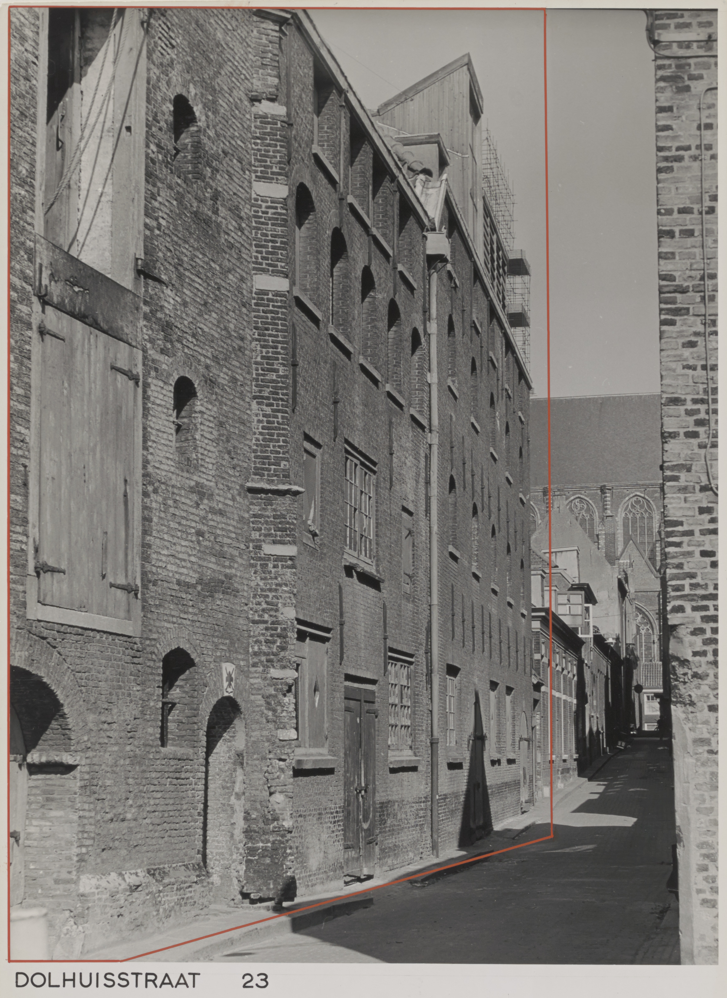 - De Dolhuisstraat vanaf het Dolhuys richting Voorstraat en Grote Kerk.