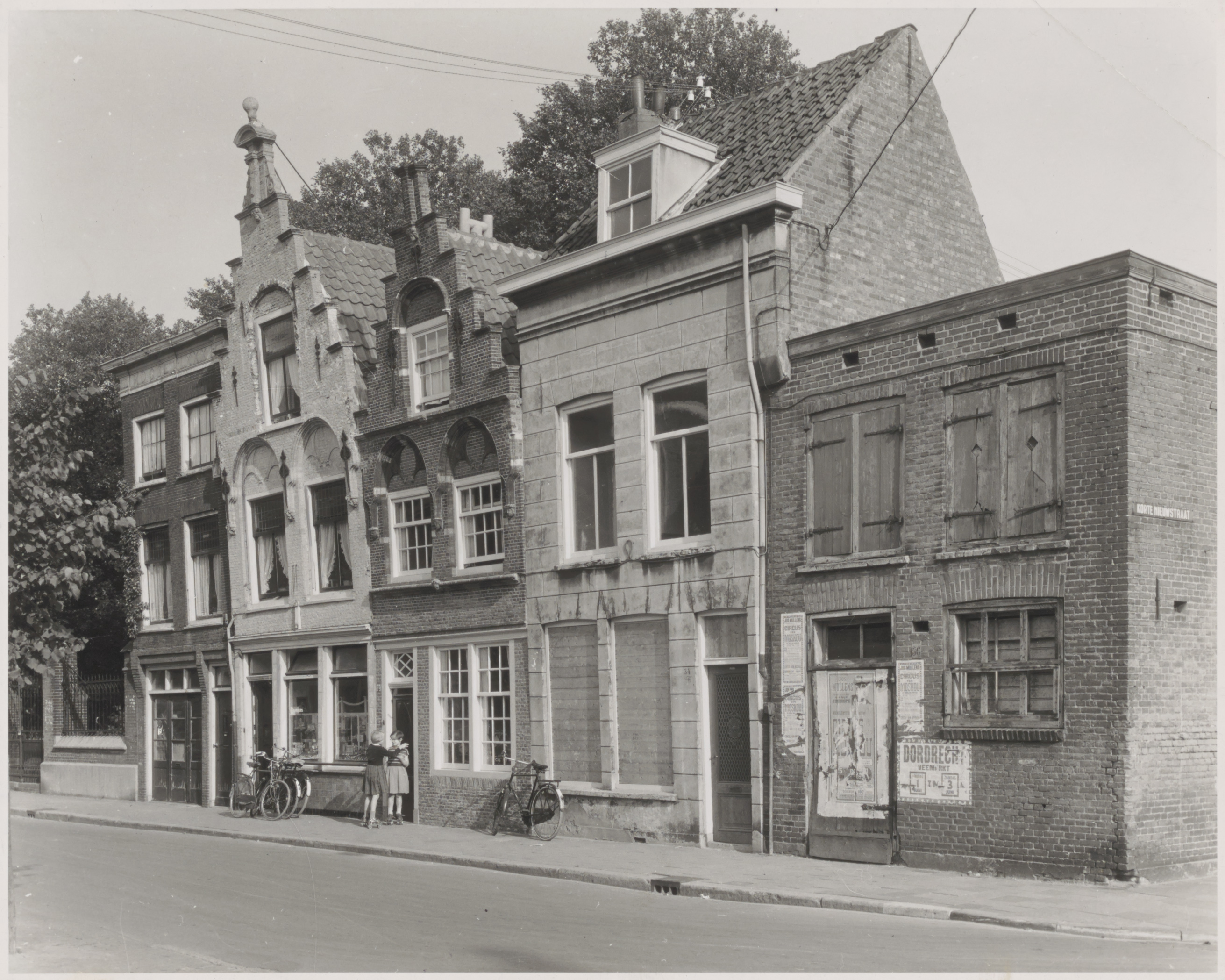 - boogramen fietsen / rijwielen kinderen rolschaatsen trapgevels winkels