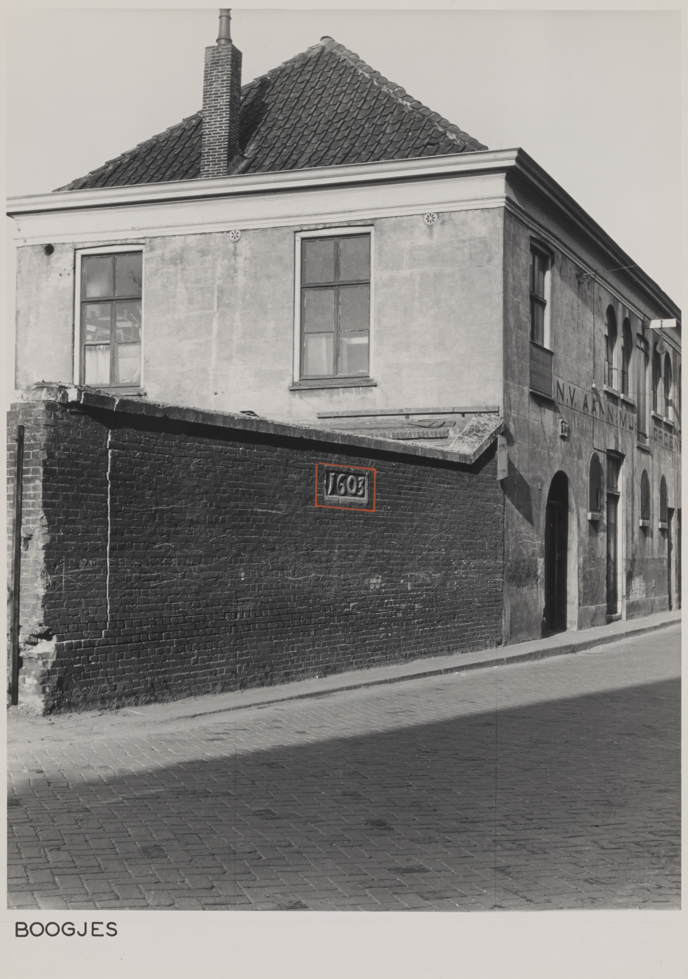 Stuk stadsmuur aan de Boogjes met gevelsteen 1603 . Daarnaast de Botgenspoort. Vervangen door nieuwbouw.