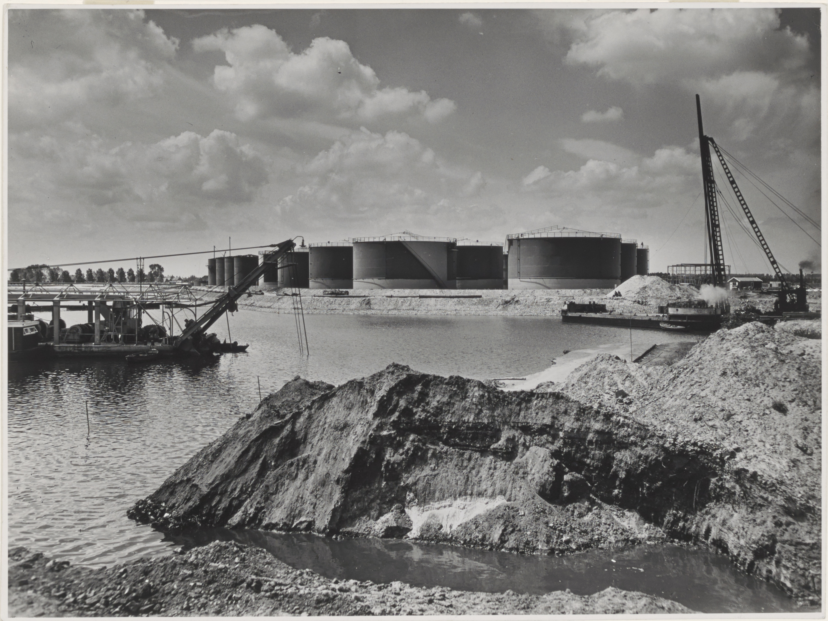 Aanleg van de Julianahaven. De opslagtanks zijn van Gebr. Broere.