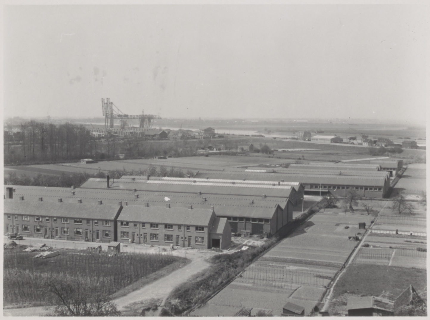 - Panorama vanaf de gashouder aan de Mijlweg op de Eerste Tolstraat (voorgrond links) en daarachter industrieën aan de Nijverheidstraat. De brugkraan (achtergrond links) staat aan de Wilhelminahaven.