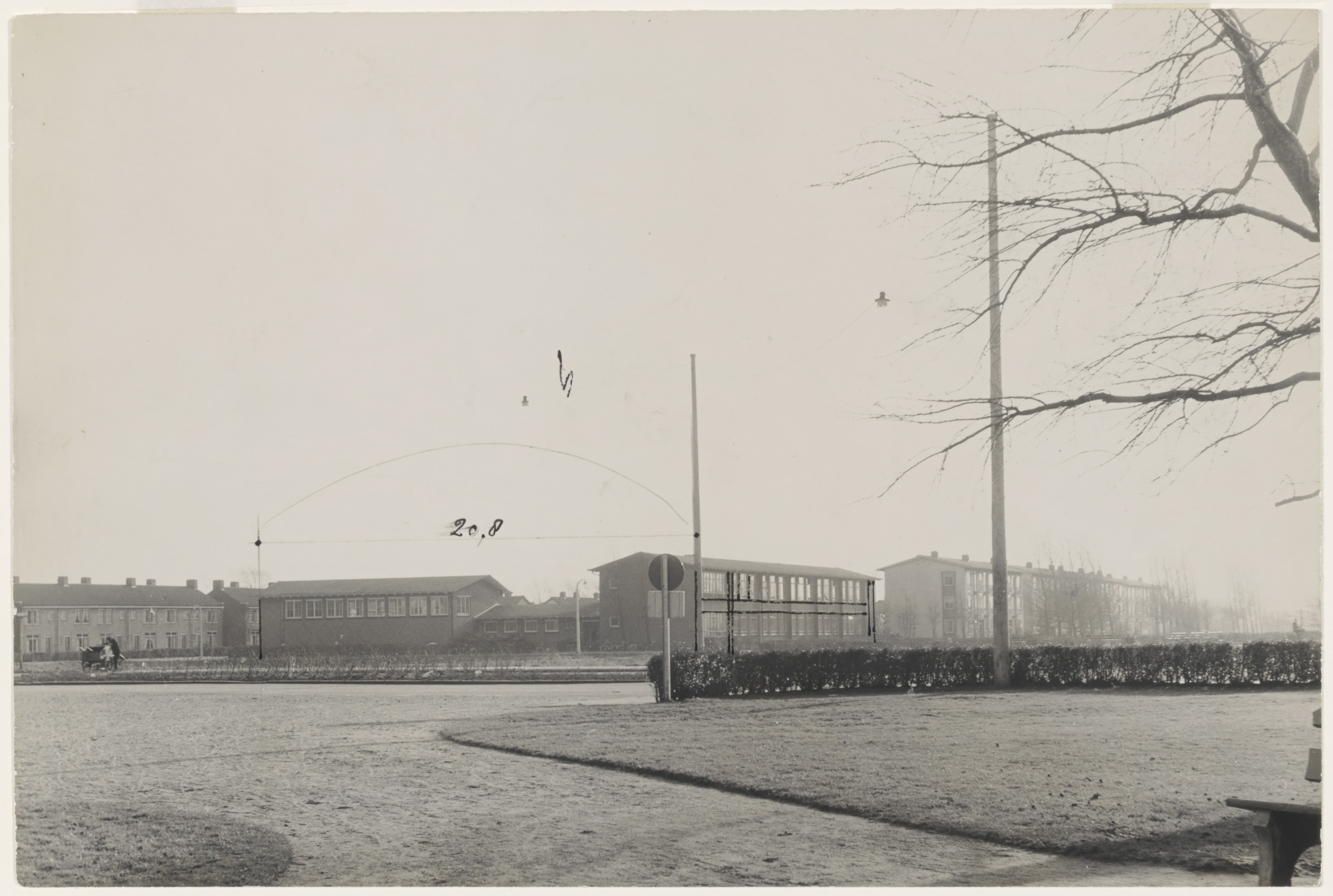- De Kohnstammschool aan de Nassauweg met de gymzaal aan de Johan Willem Frisostraat (links).