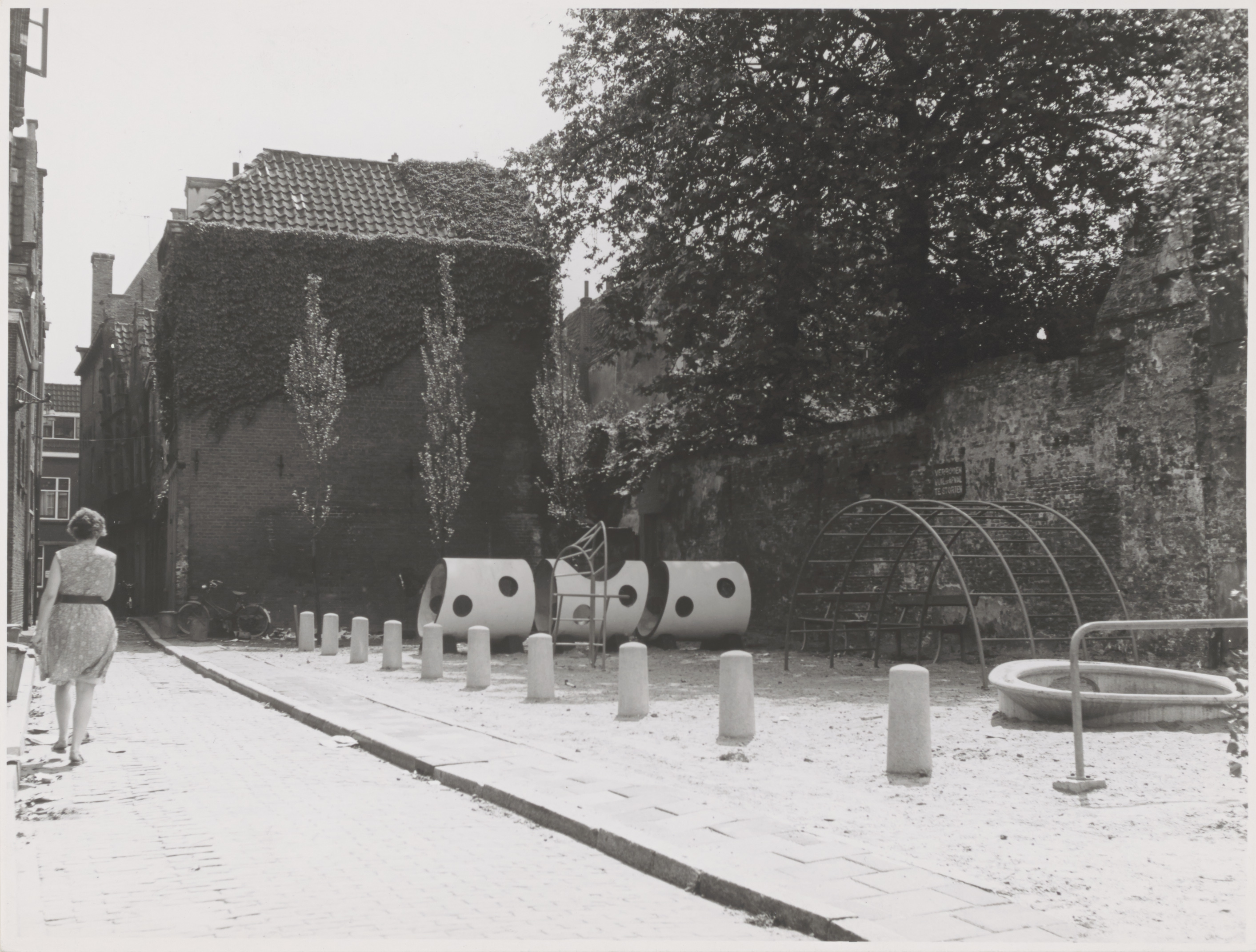 Speeltuintje in de Schuitenmakersstraat, gezien in de richting van de Grotekerksbuurt.