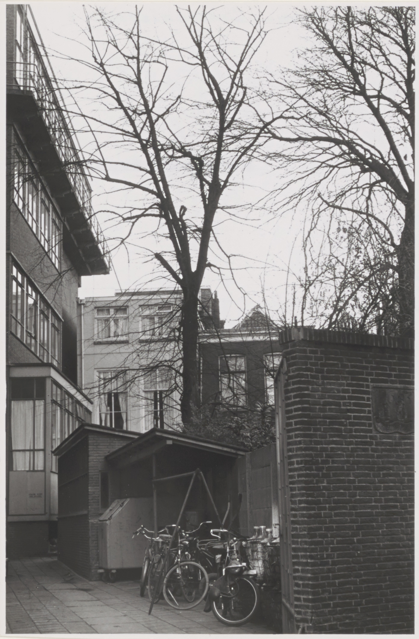 - Vanuit de Suikerstraat een blik langs het Diaconessenhuis (links) naar de achterkant van huizen in de Prinsenstraat.