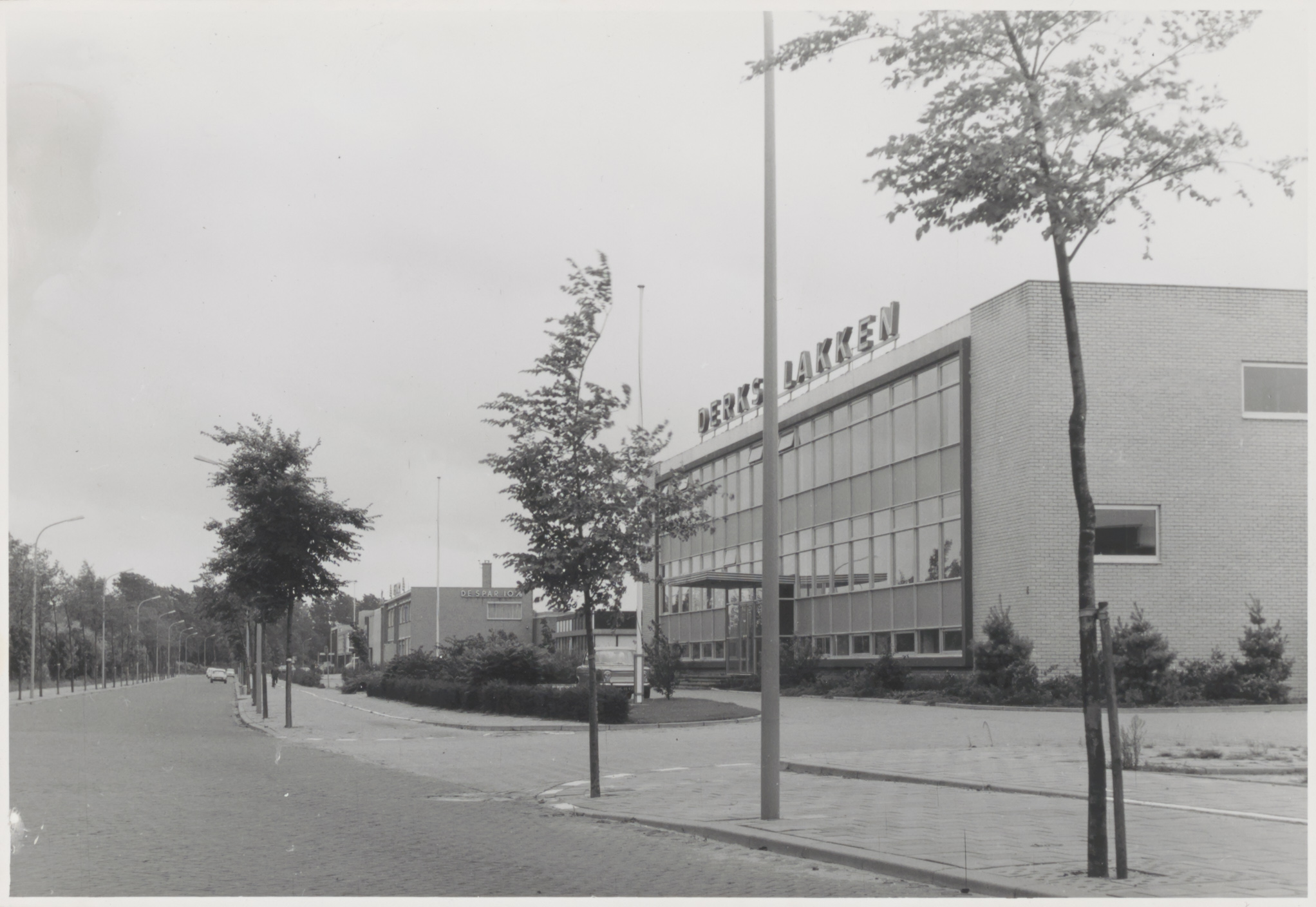 Kantoren kruideniersbedrijf De Spar en verffabriek Derks aan de Mijlweg.