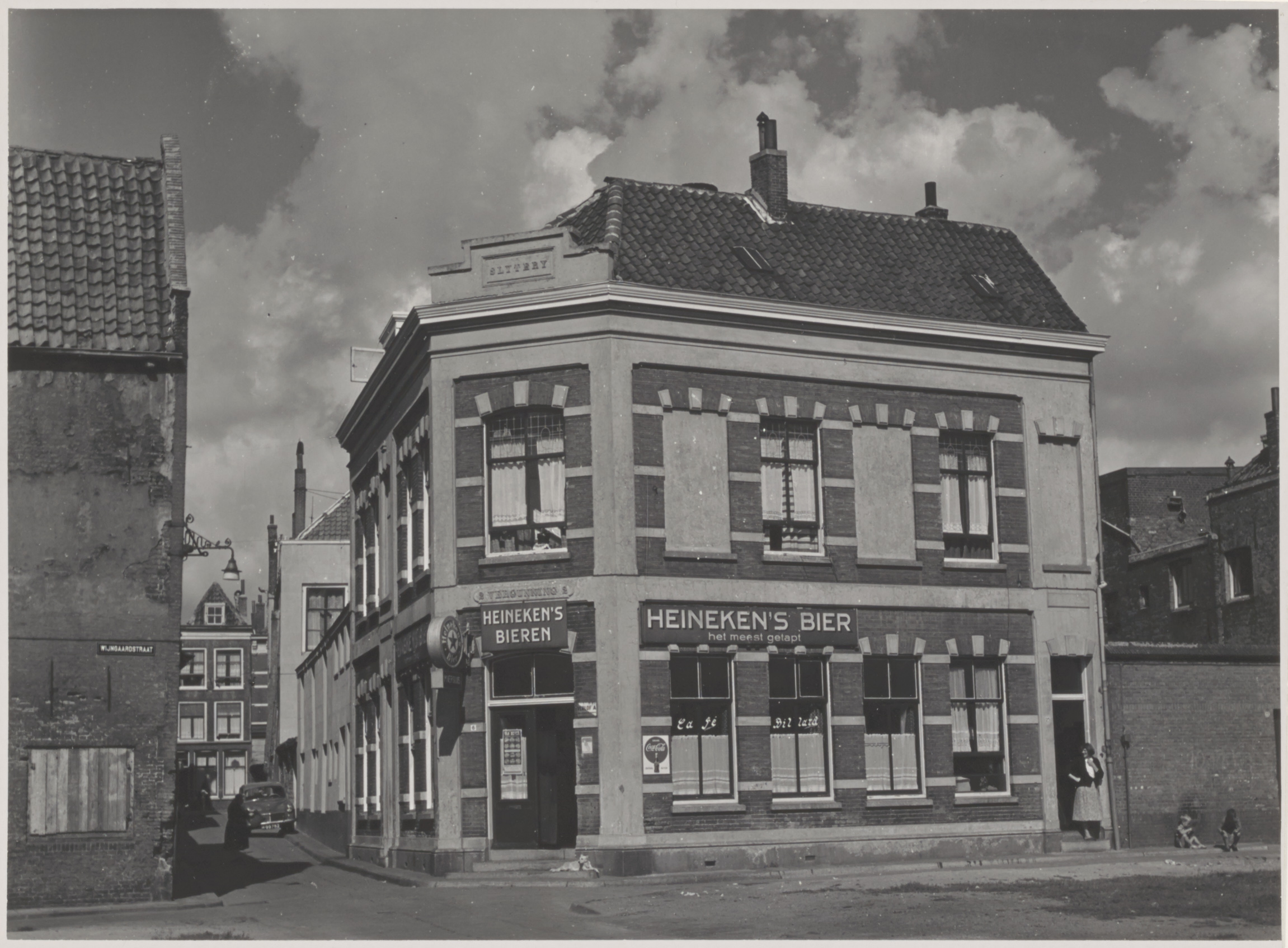 Café Versluis in de Wijngaardstraat op de hoek van de Nieuwkerkstraat die naar de …
